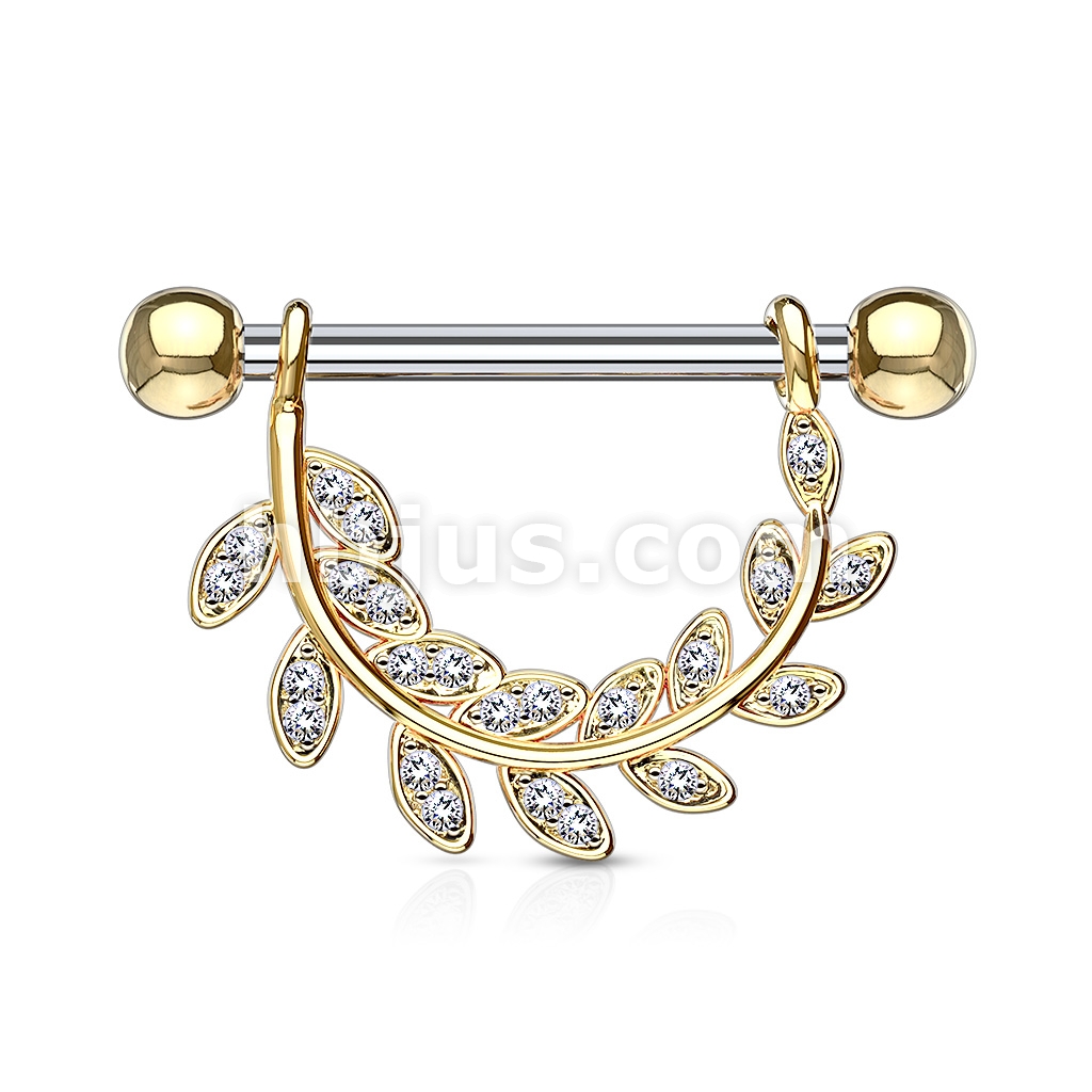 CZ Paved Leaf Hanging 316L Surgical Steel Barbell Nipple Rings