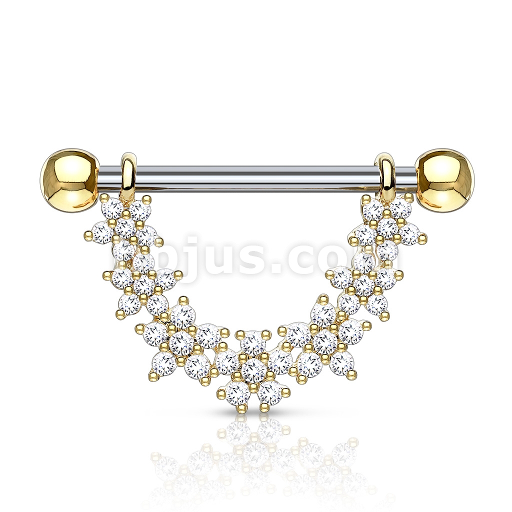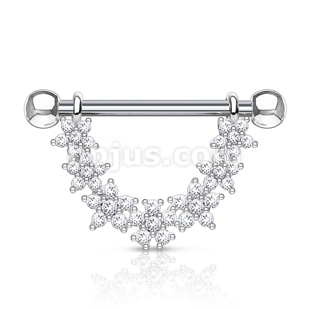 CZ Paved Linked Flowers Dangle 316L surgical Steel Nipple Rings