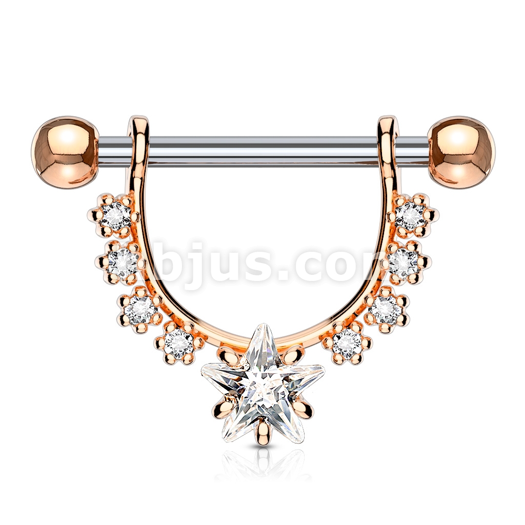 Star CZ Center with Lined Prong Set CZs Dangle 316L Surgical Steel Nipple Rings