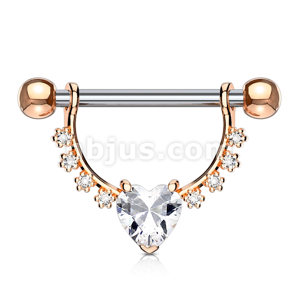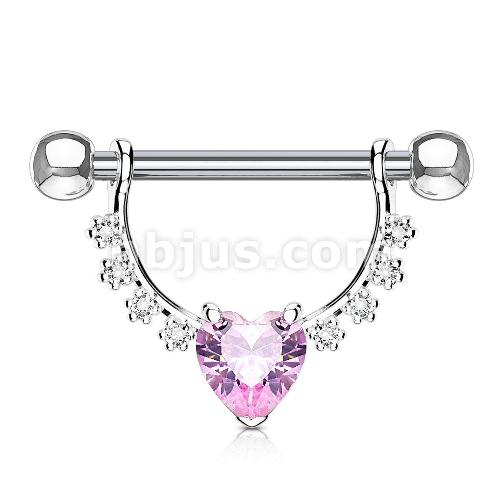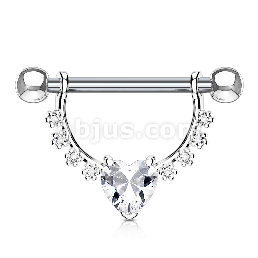 Heart CZ Center with Lined Prong Set CZs Dangle 316L Surgical Steel Nipple Rings