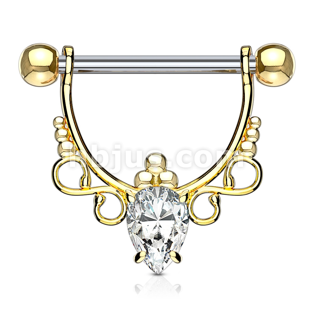 Pear CZ Center with Infinite Filigree Dangle 316L Surgical Steel Nipple Rings
