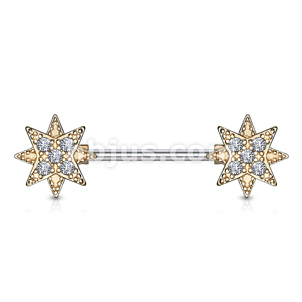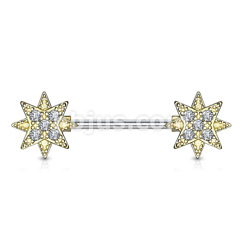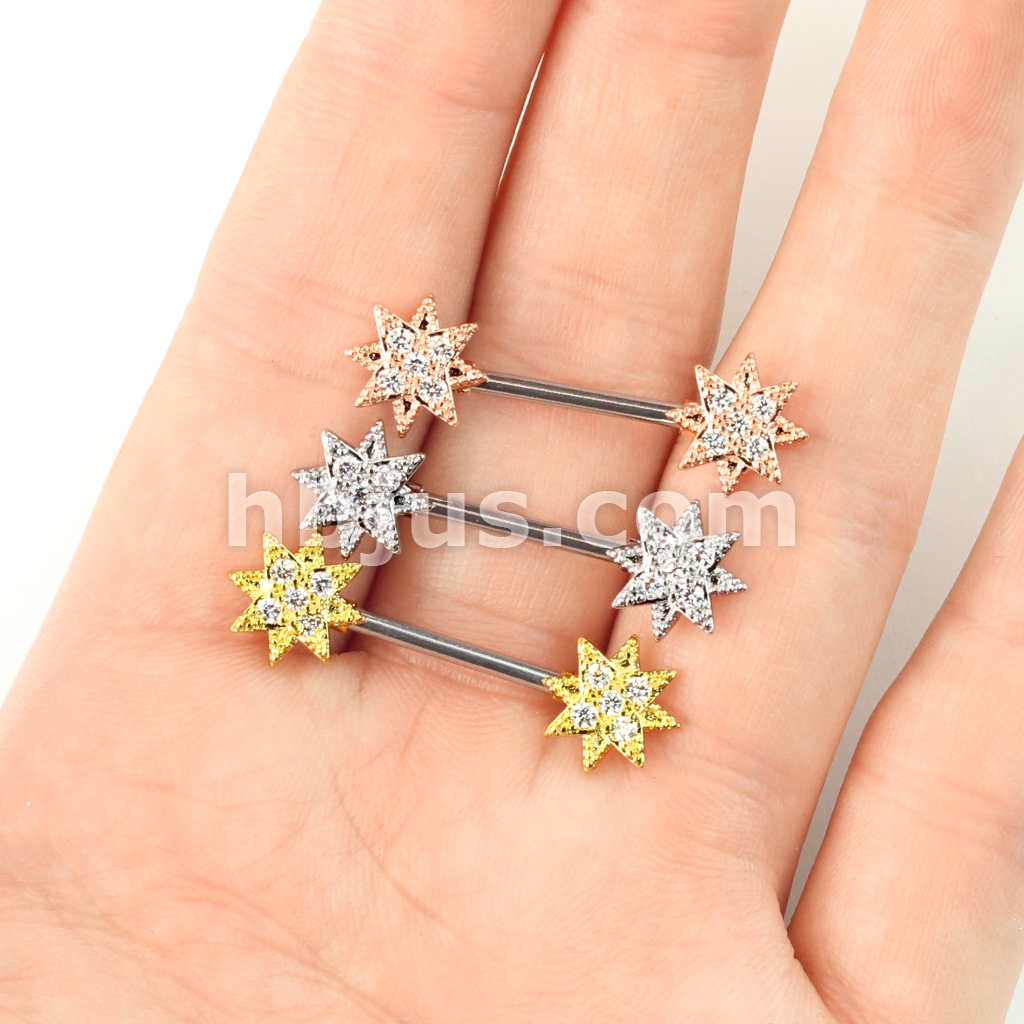 CZ Paved Starburst Ends 316L Surgical Steel Nipple Barbell Rings