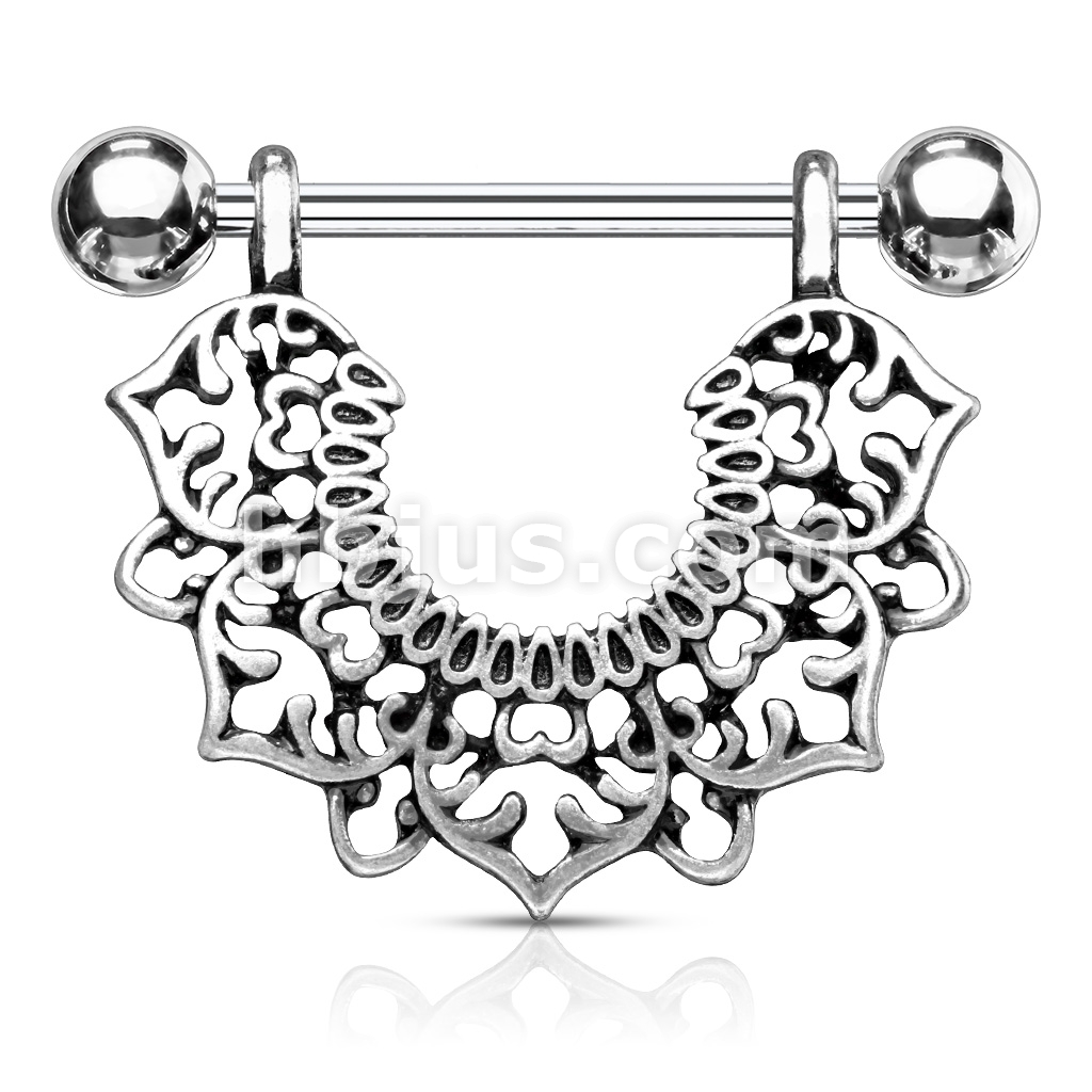 Filigree Flower Dangle 316L Surgical Steel Nipple Rings