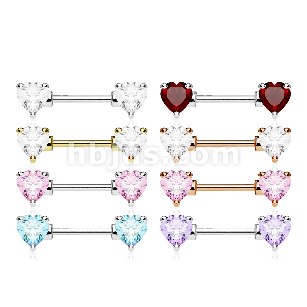 80 Pcs Heart CZ Prong Set Ends 316L Surgical Steel Barbell Nipple Rings Bulk Pack (10 pcs x 8 Colors)
