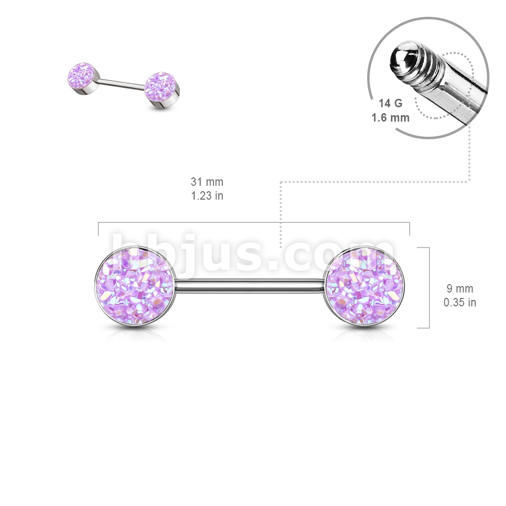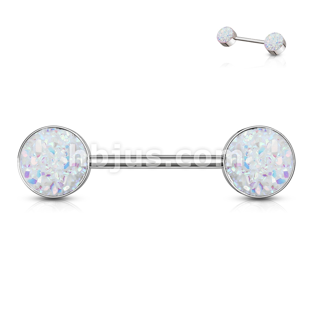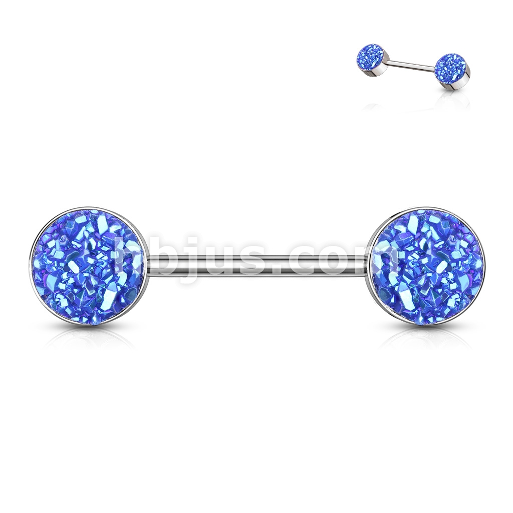 Druzy Stone Set Ends 316L Surgical Steel Barbell Nipple Rings