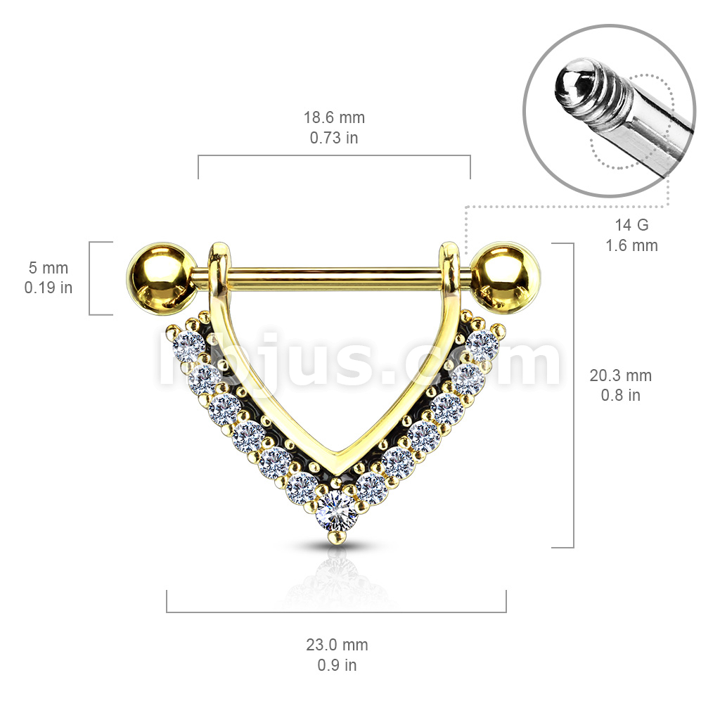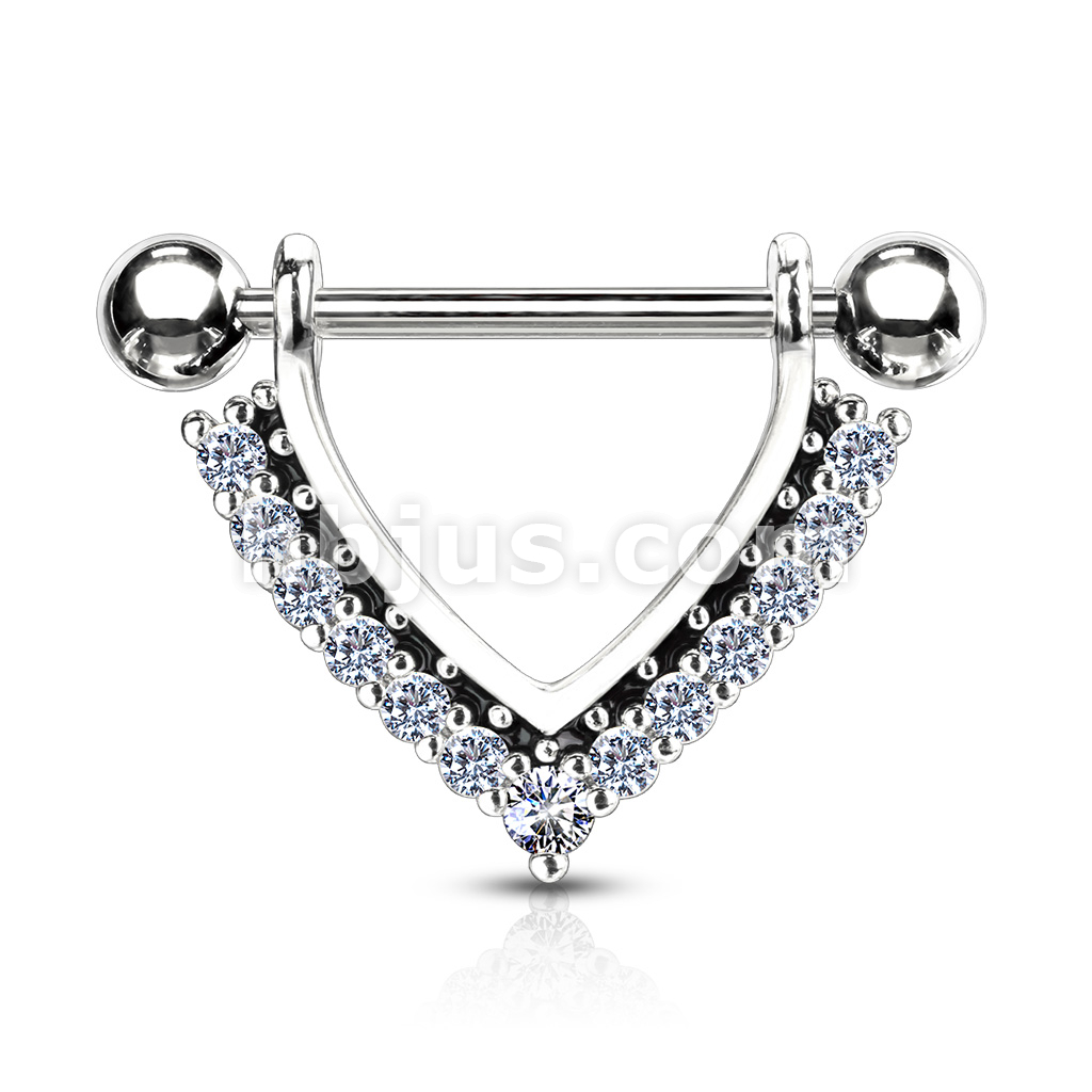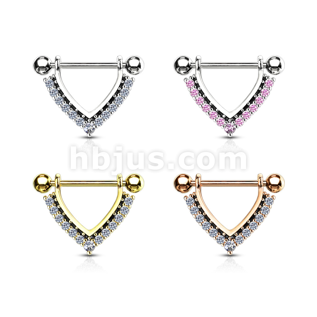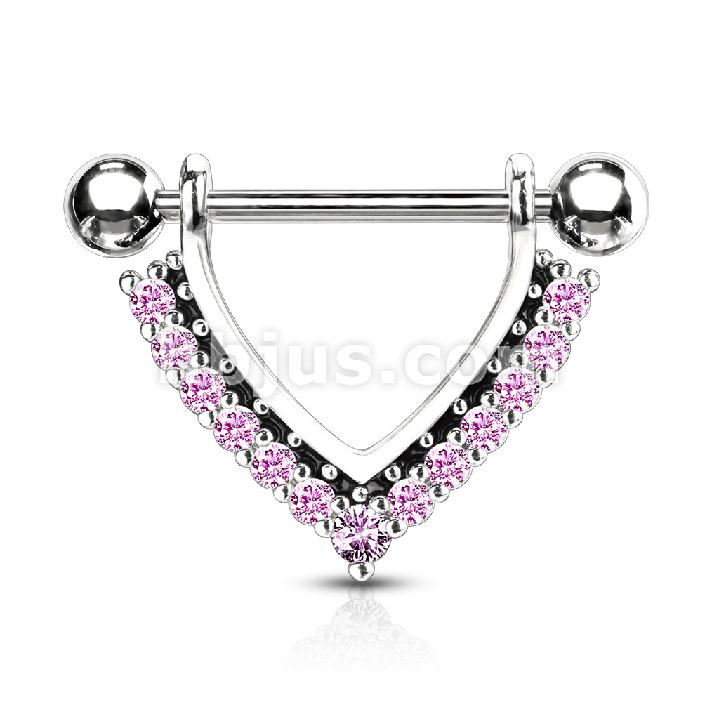 CZ Paved Black Enamel Dangle 316L Surgical Steel Nipple Rings