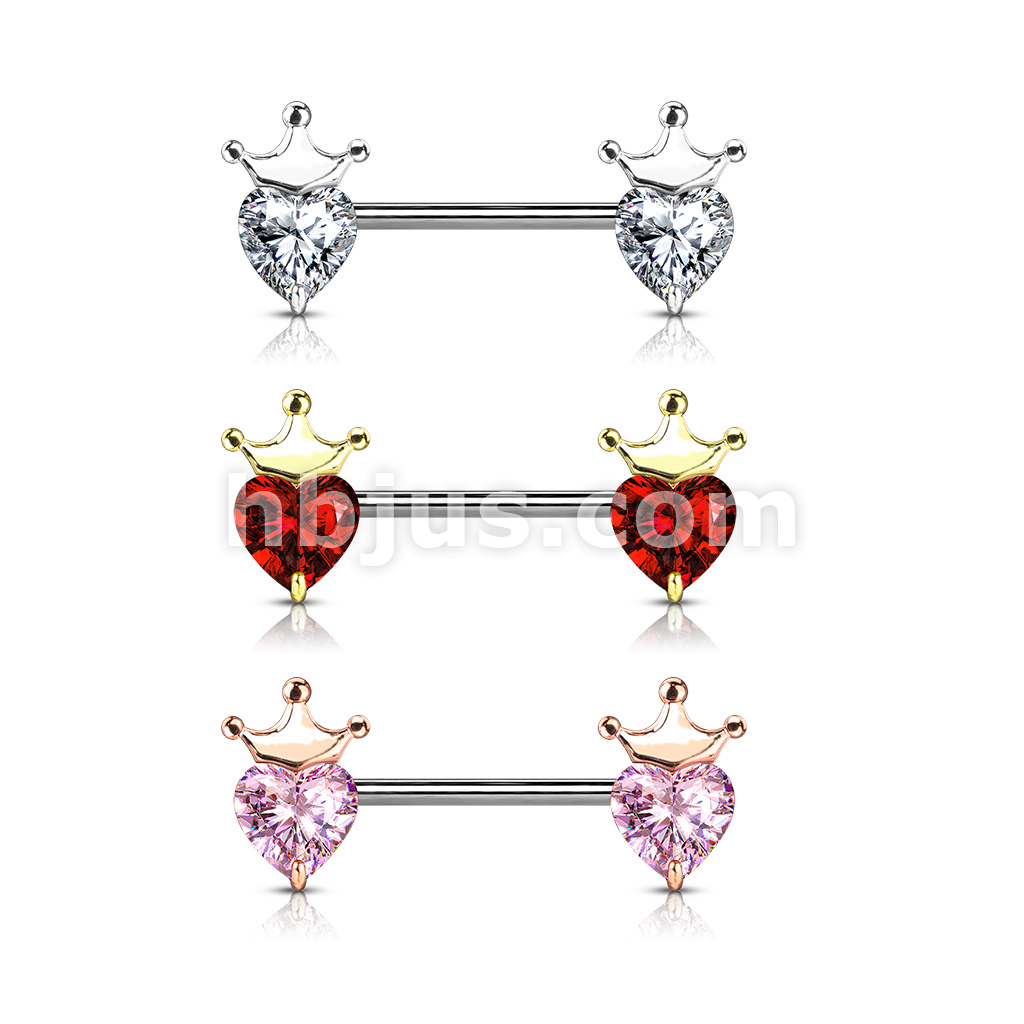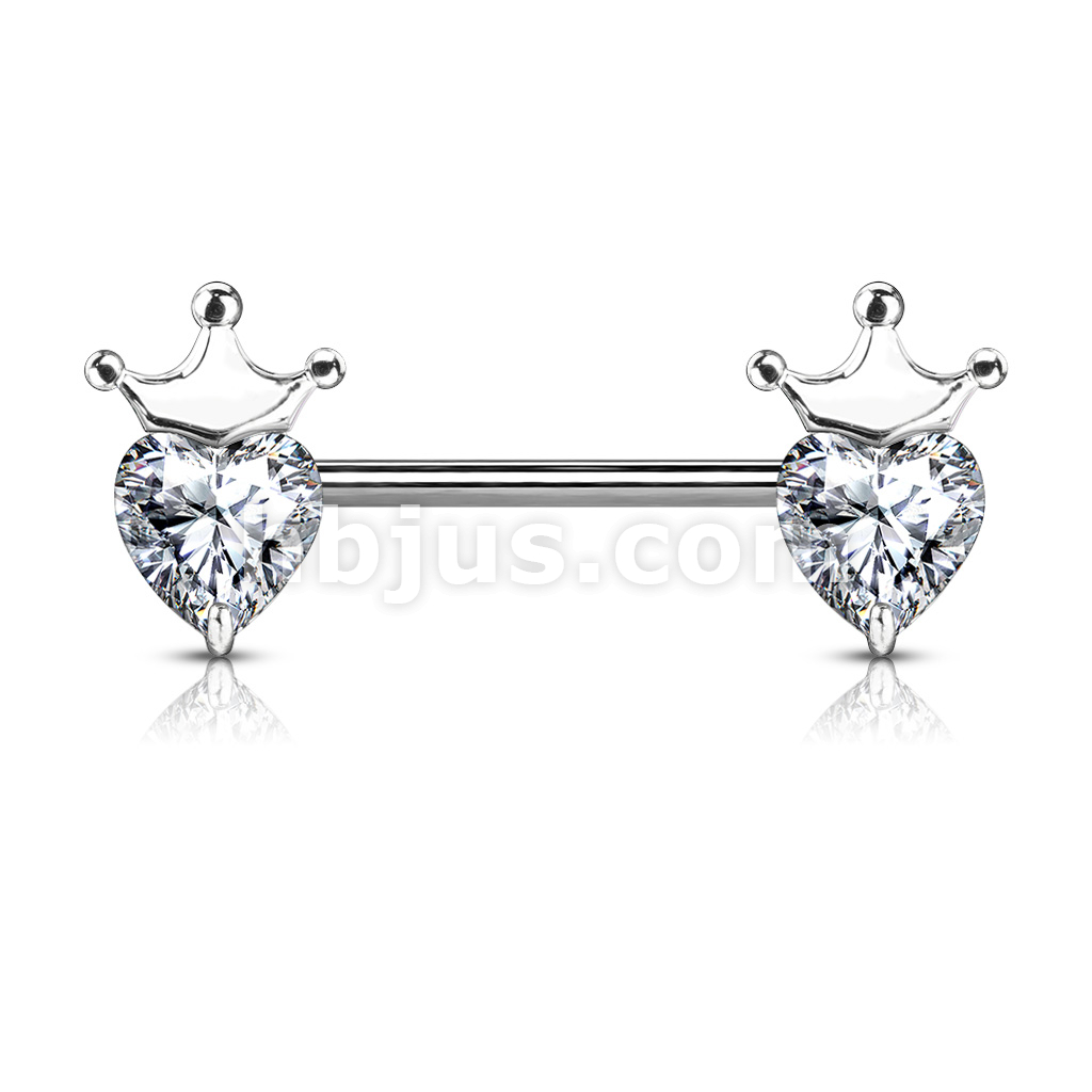 Heart CZ with Crown 316L Surgical Steel Barbell Nipple Rings