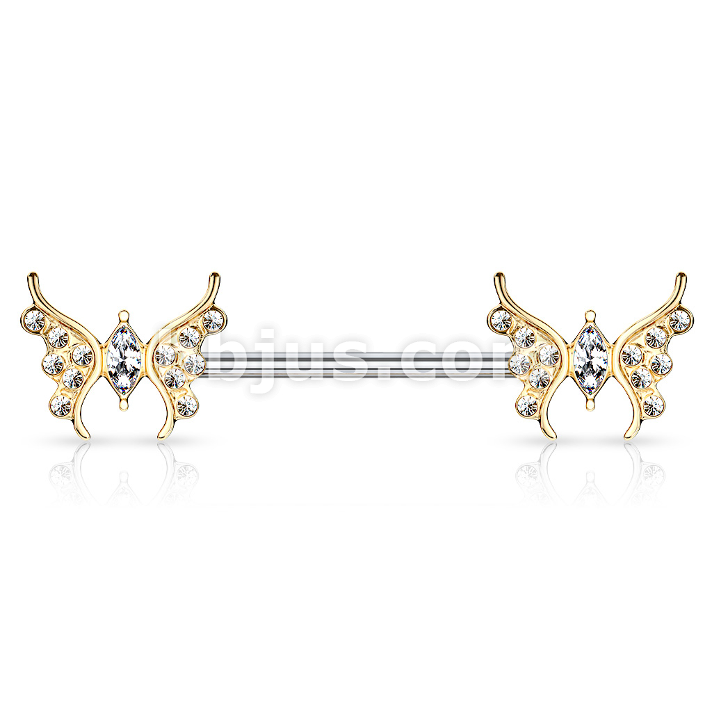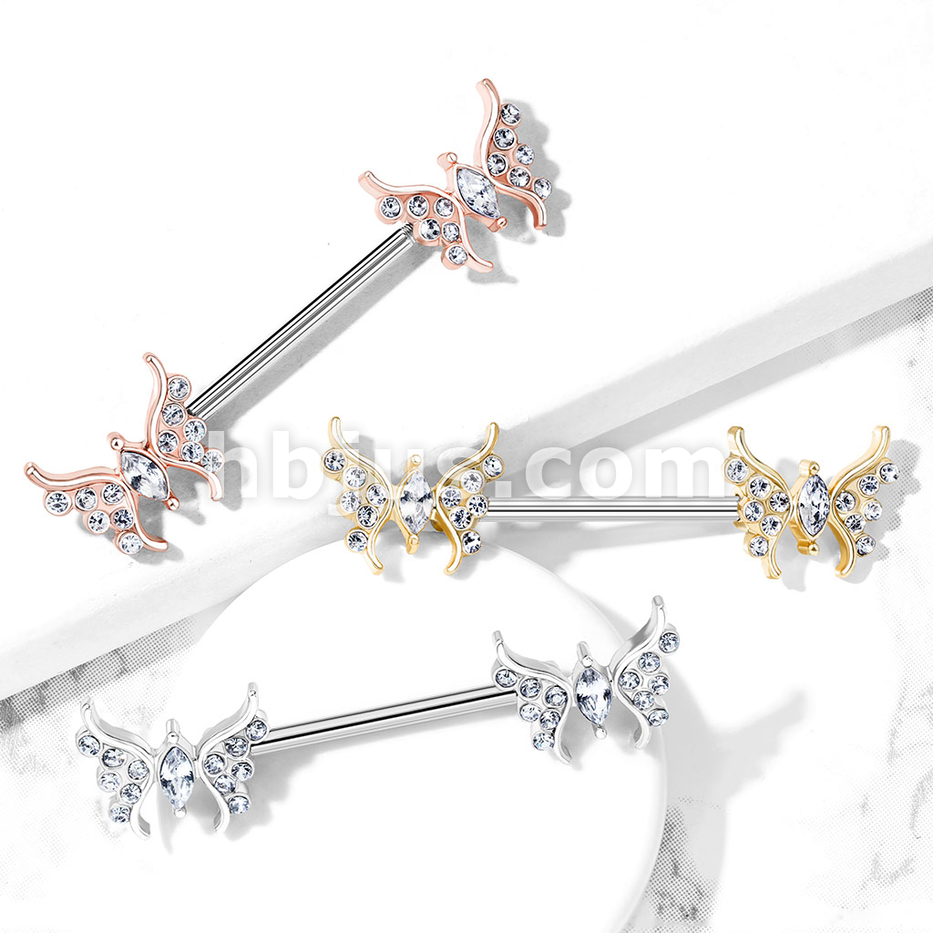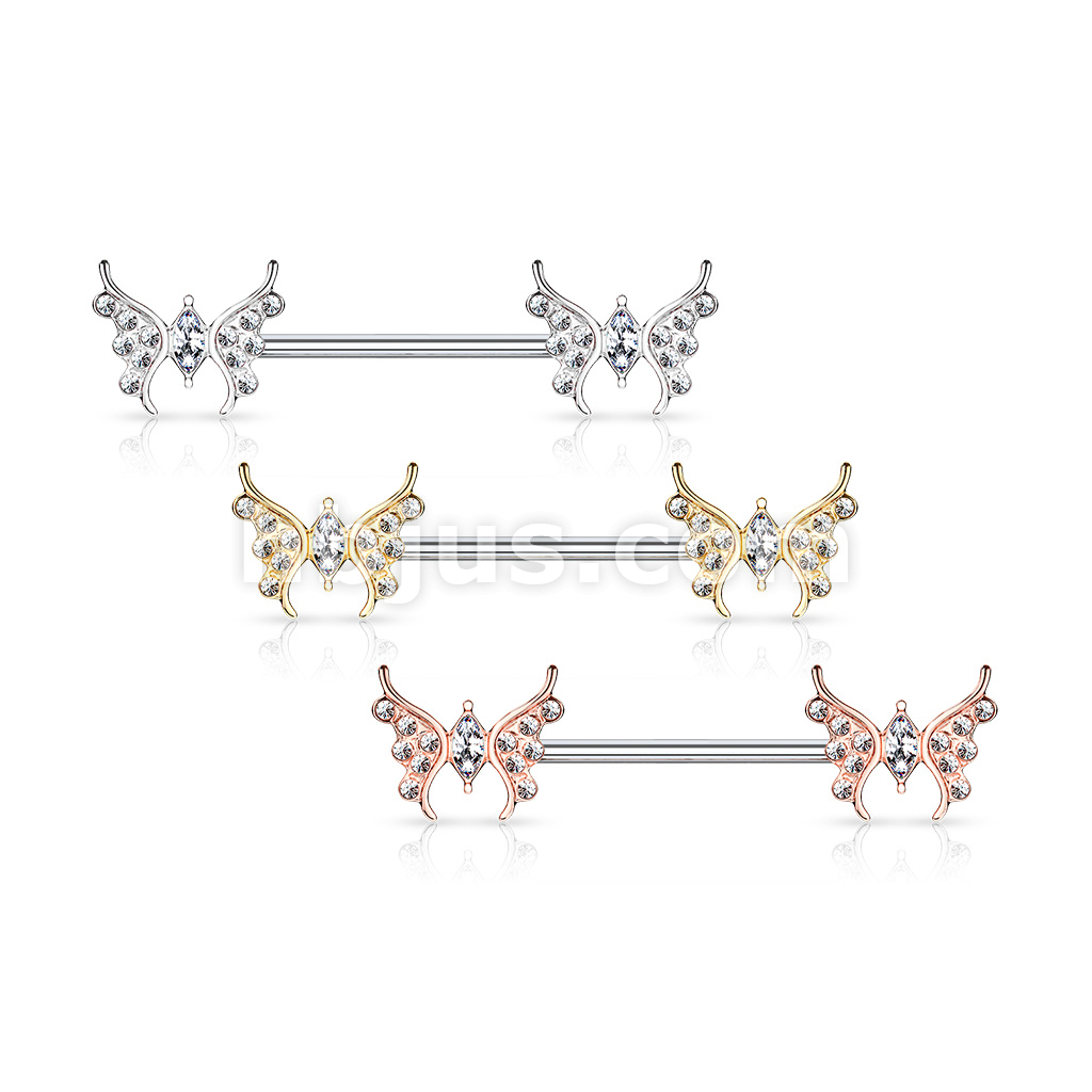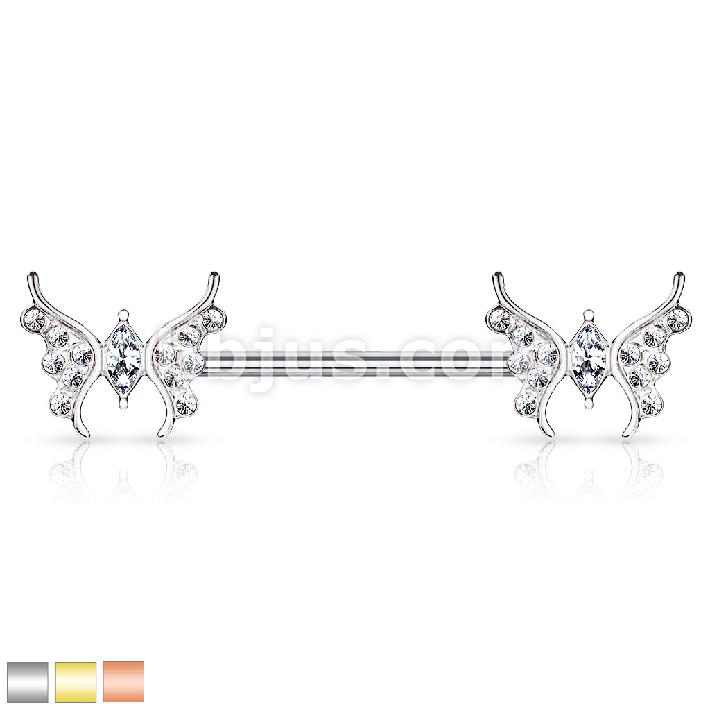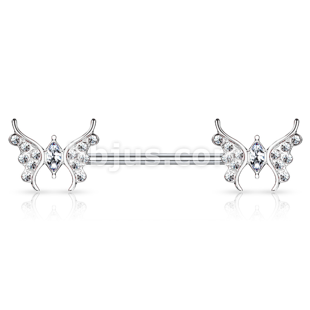 CZ Paved Butterfly with Marquise CZ Center 316L Surgical Steel Barbell Nipple Rings