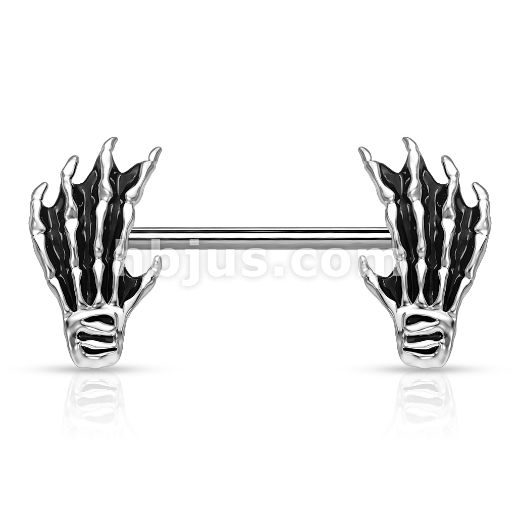 Skull Hand Ends 316L Surgical Steel Barbell Nipple Rings