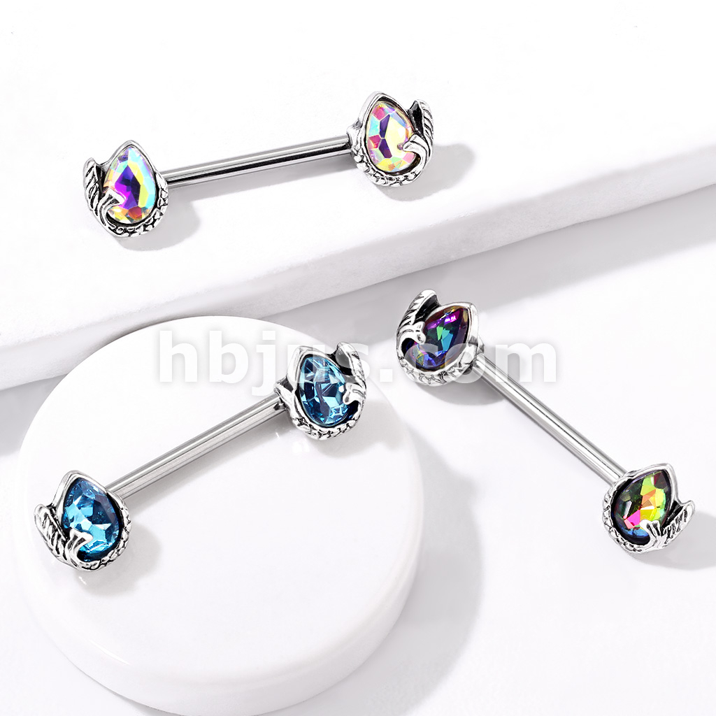 Mermaid Tail Wrapped Pear Shaped Crystal 316L Surgical Steel Nipple Barbell Rings