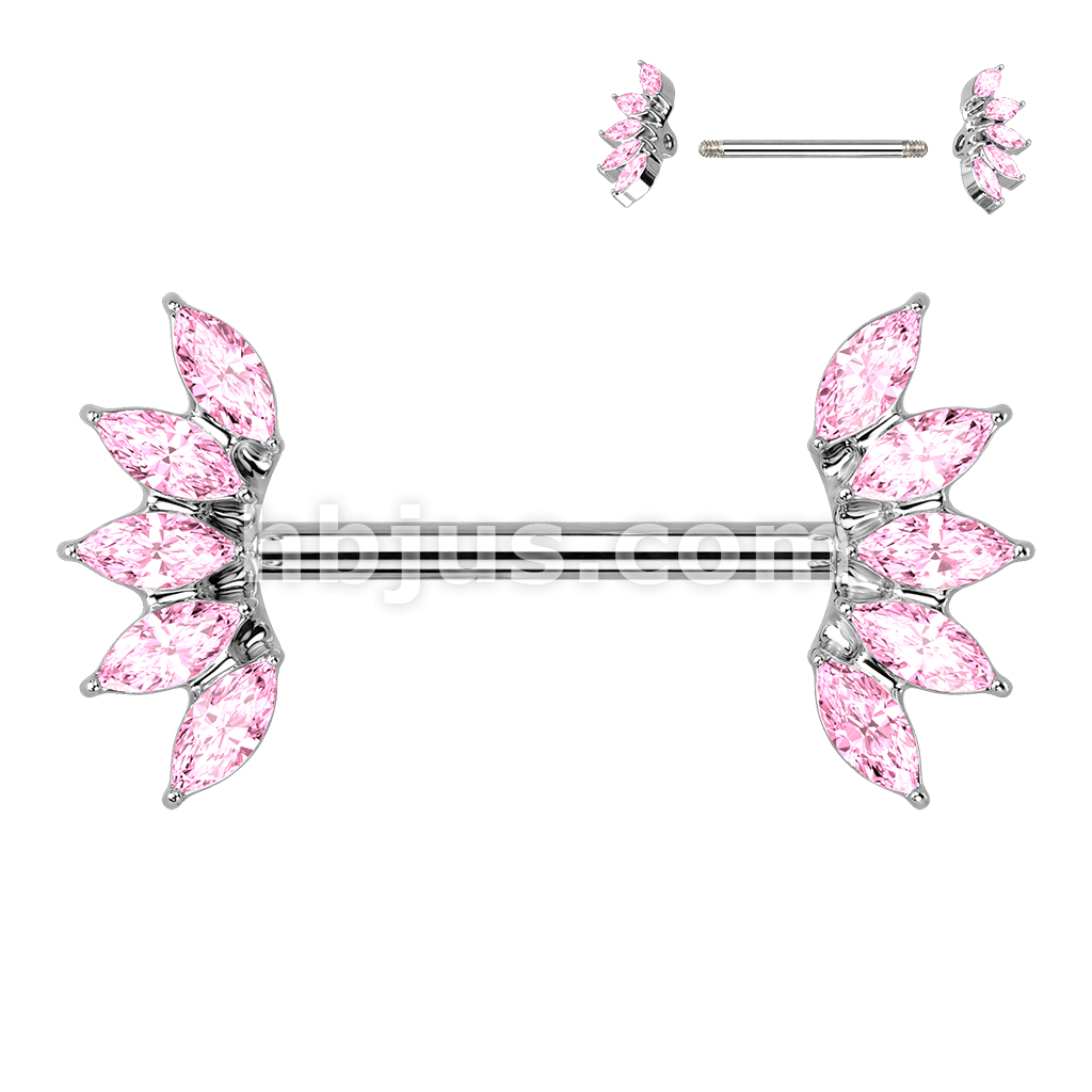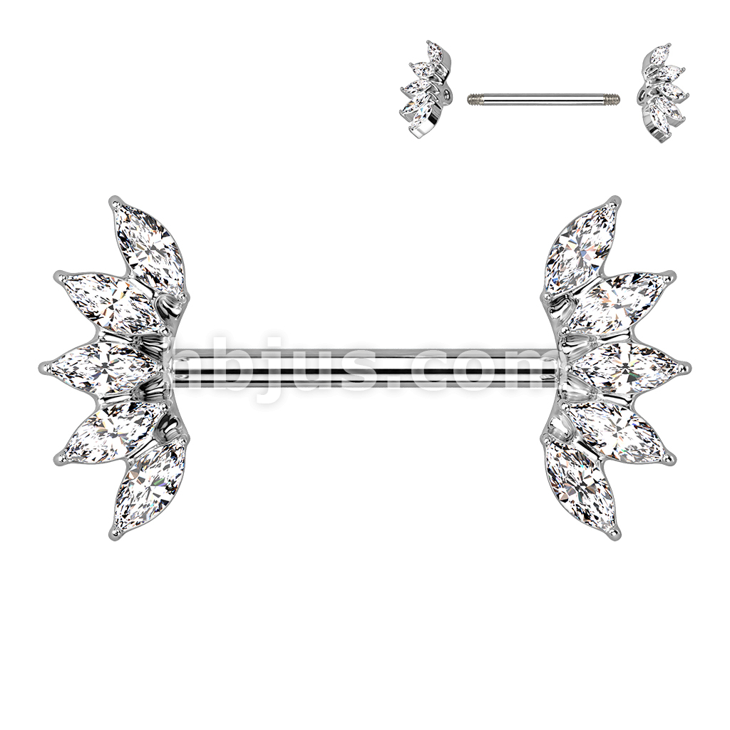 5 Marquise Crystals Fan Ends 316L Surgical Steel Nipple Barbell Rings