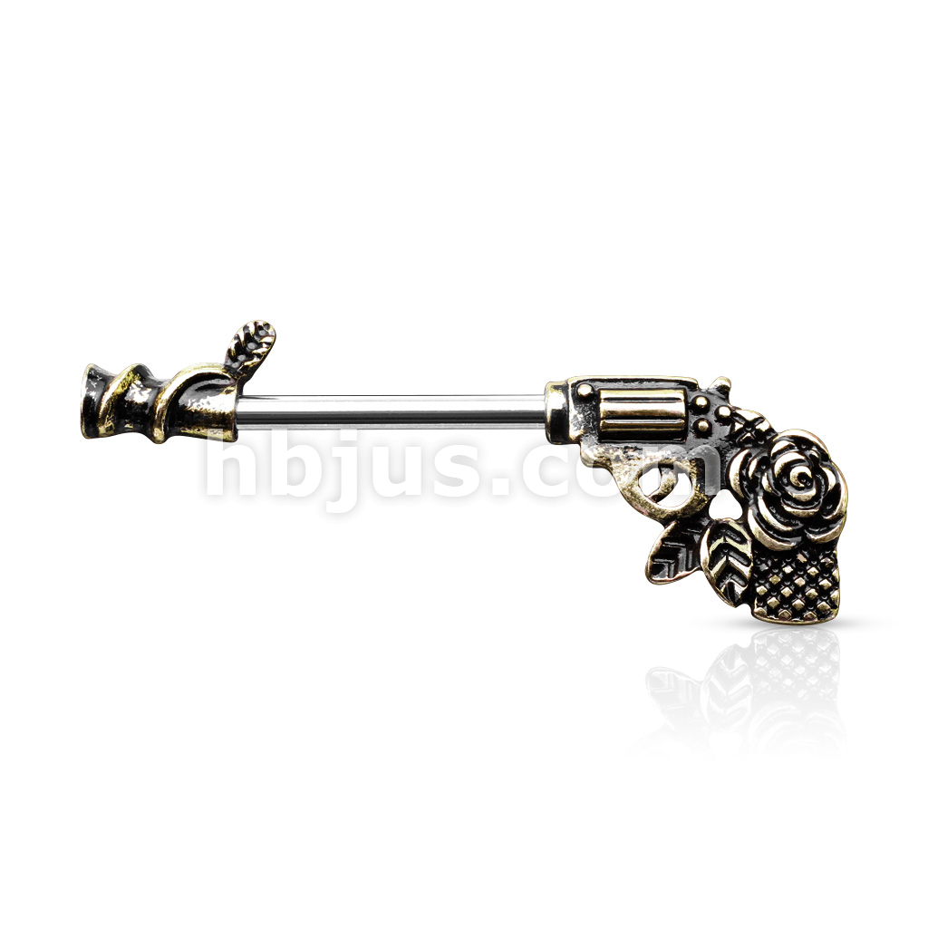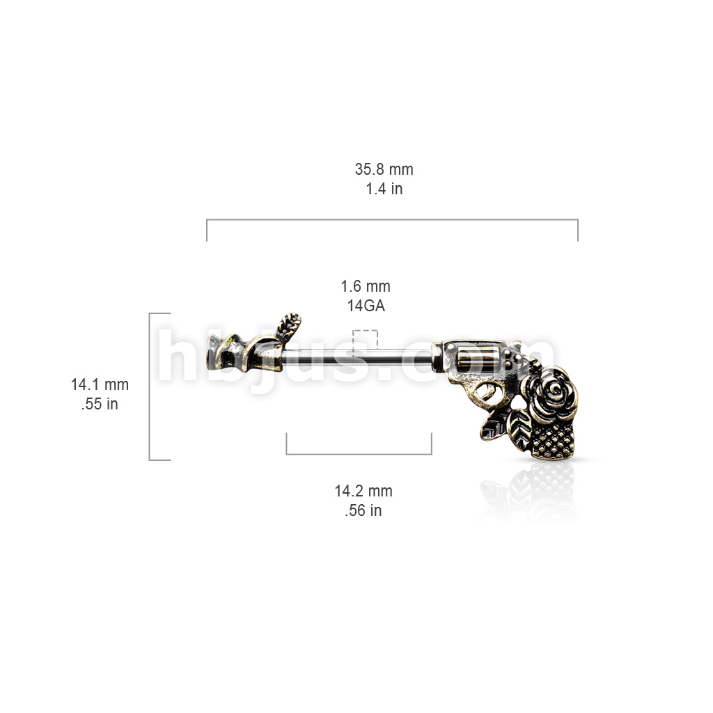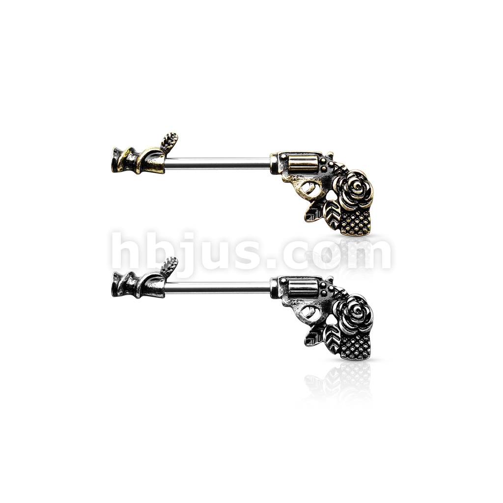 Rose Pistol 316L Surgical Steel Barbell Nipple Rings