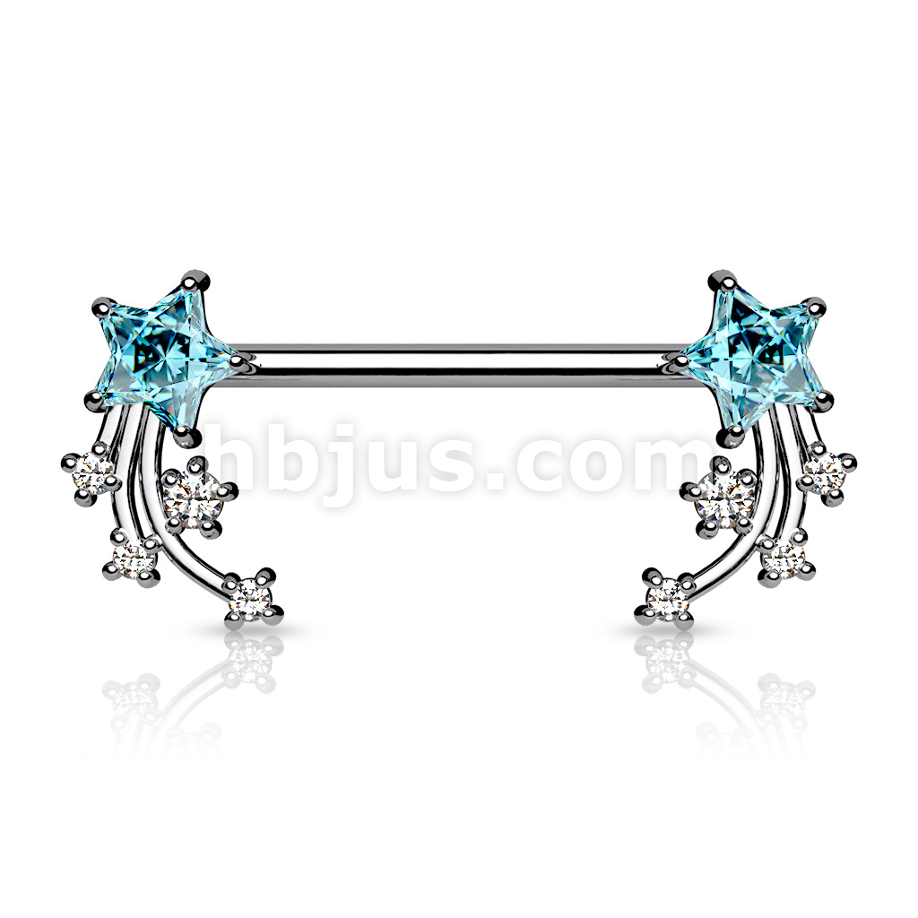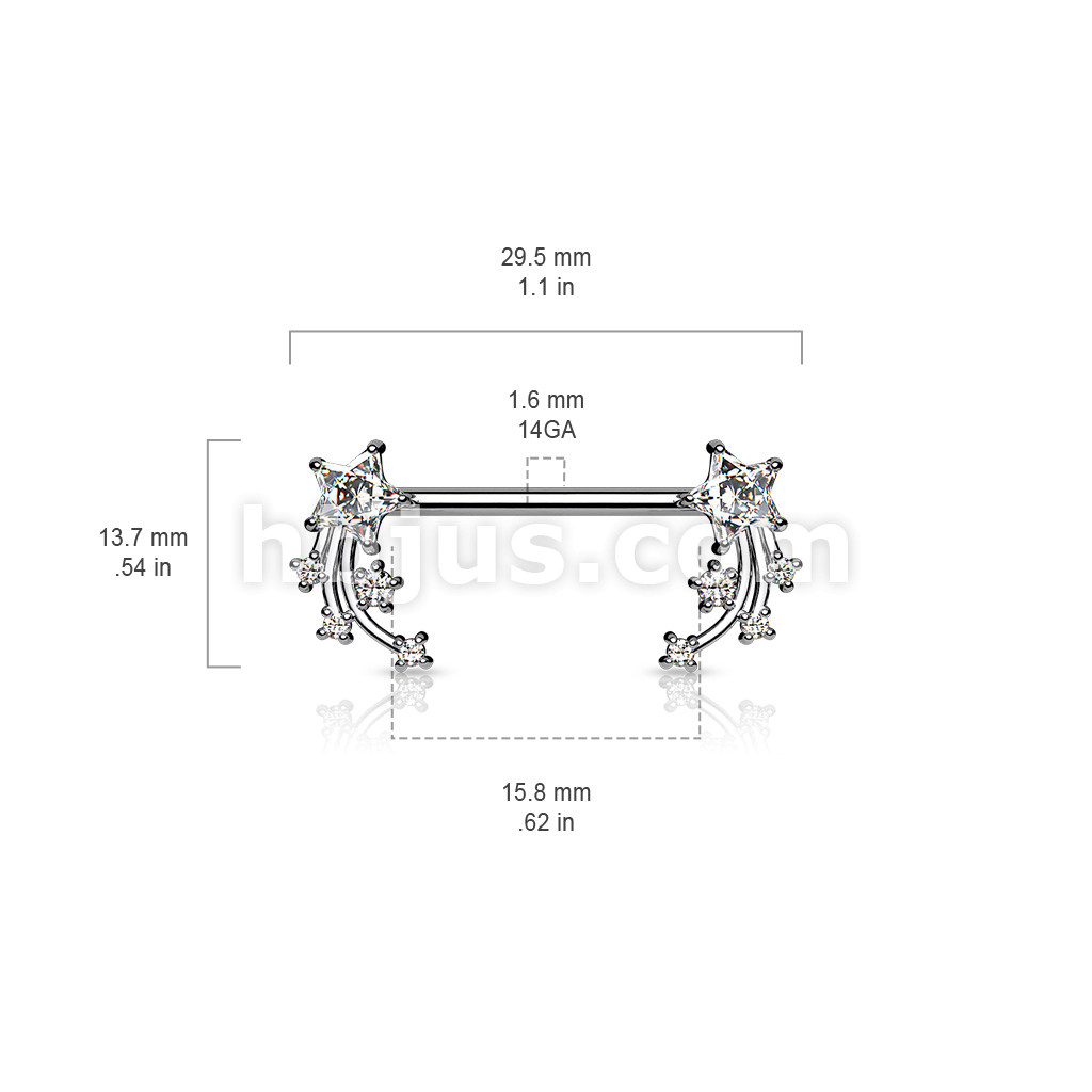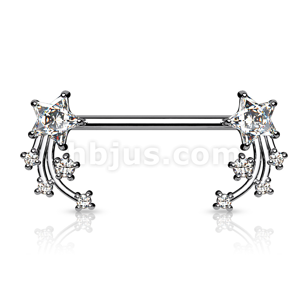 CZ Shooting Star Ends 316L Surgical Steel Nipple Barbell Rings