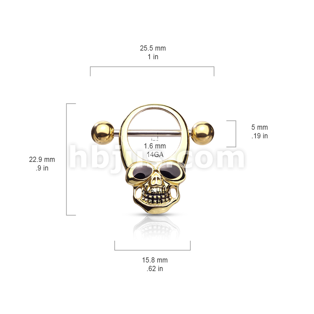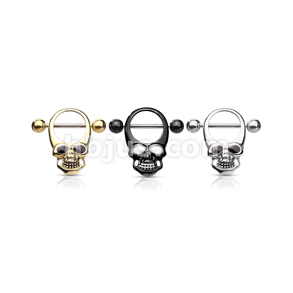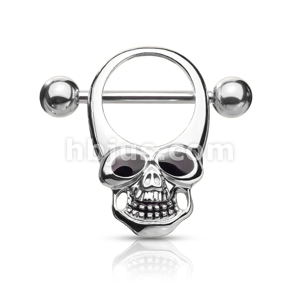 Skull With Enamel Eyes 316L Surgical Steel Nipple Shield Ring