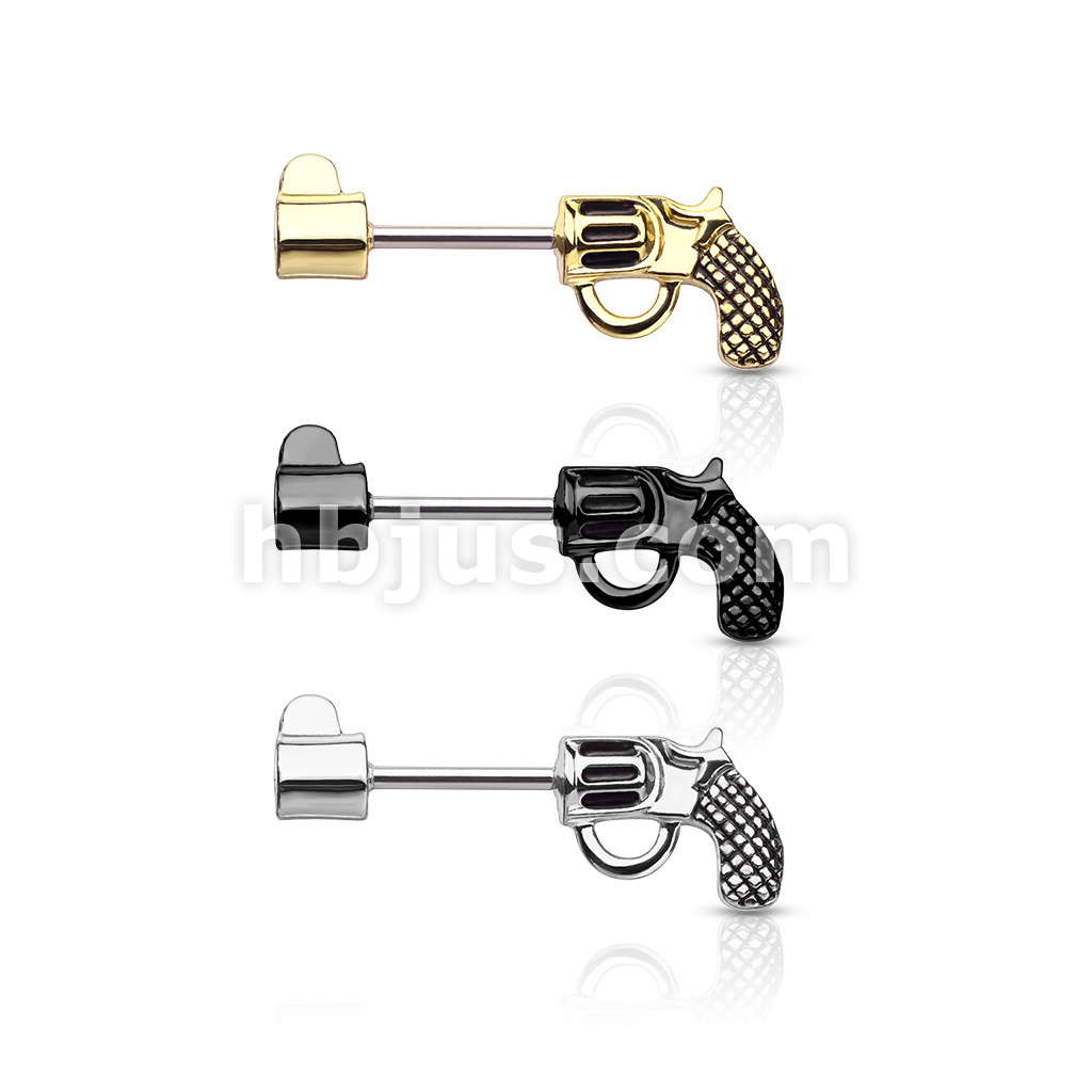 Revolver Pistol 316L Surgical Steel Barbell Nipple Rings