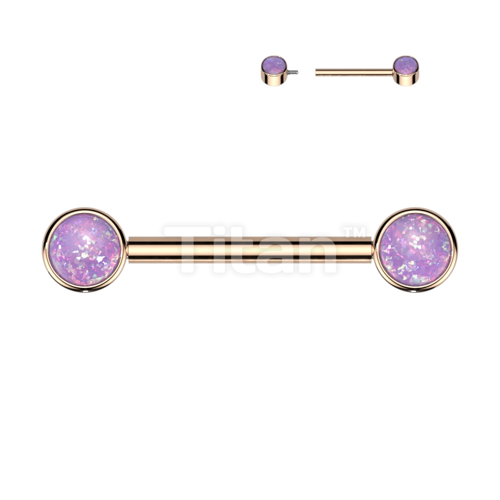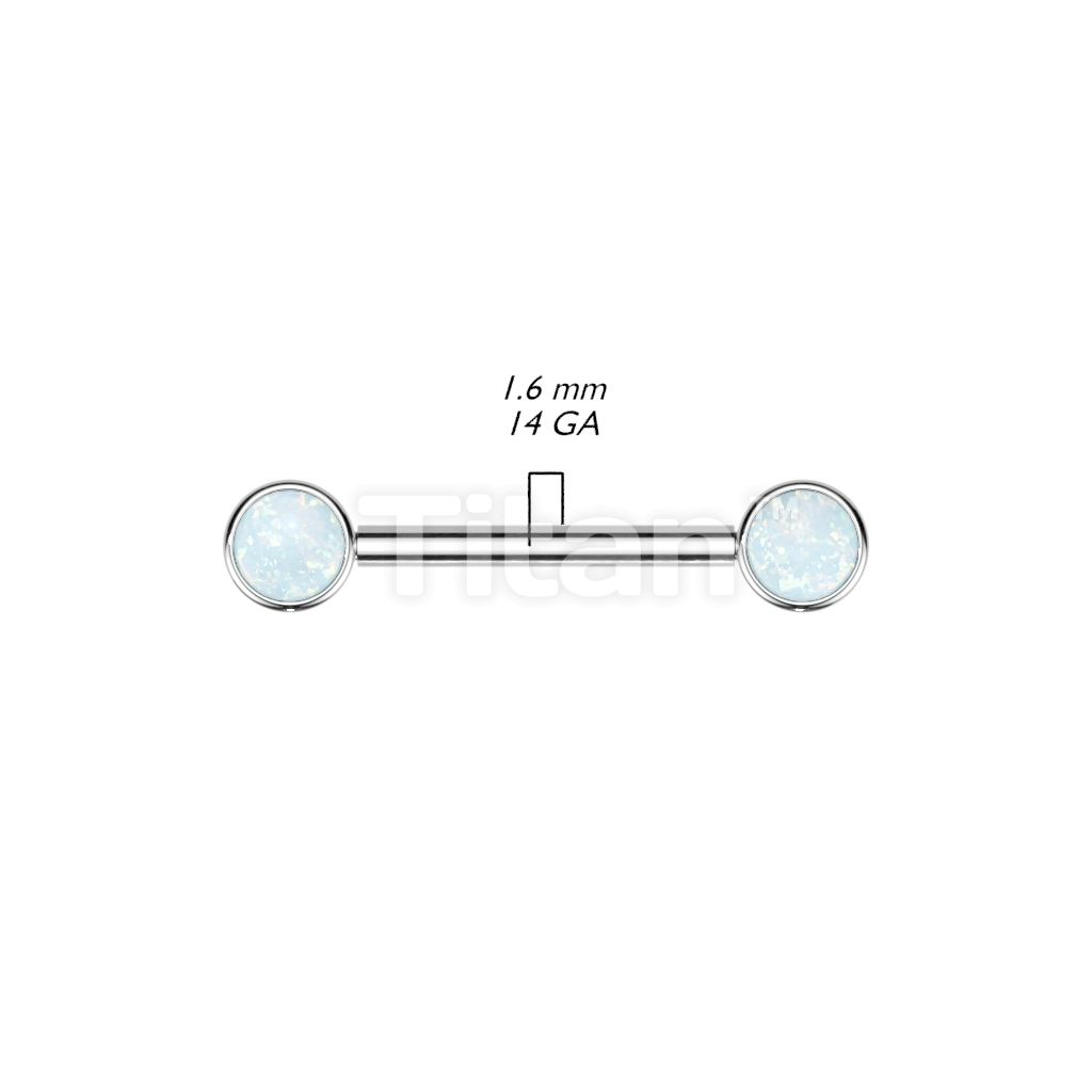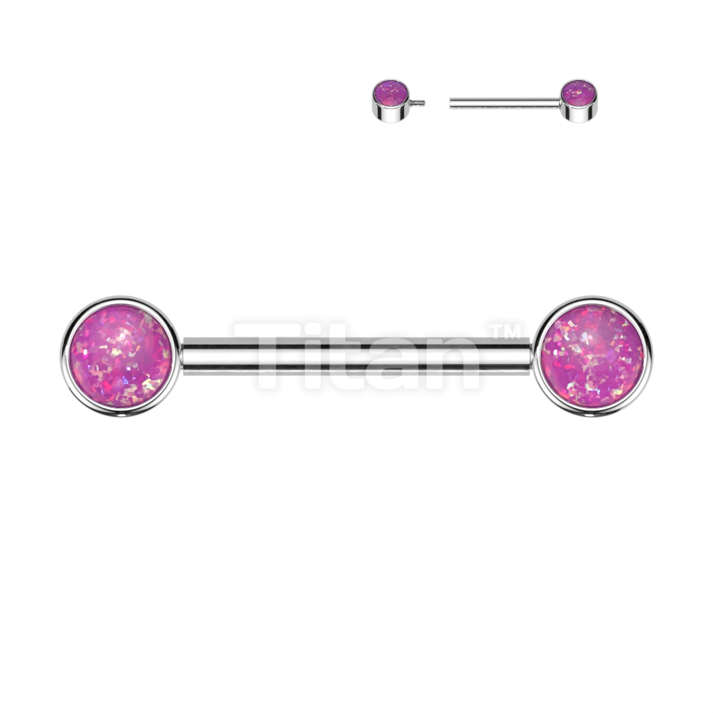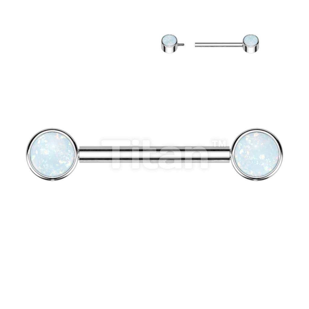 Implant Grade Titanium Internally Threaded Nipple Barbell With Opal Bezel Set Ends