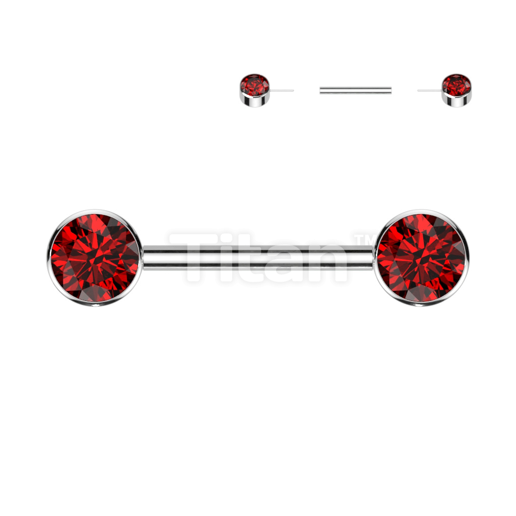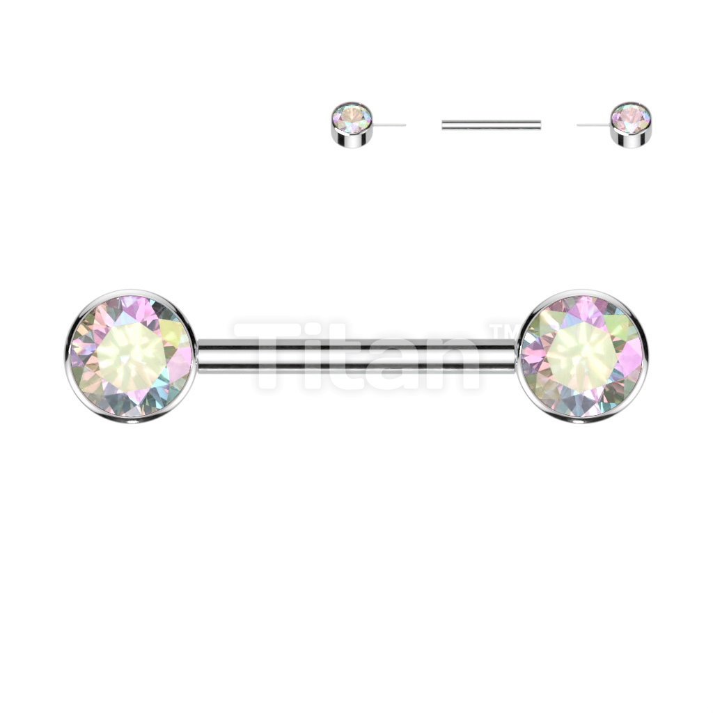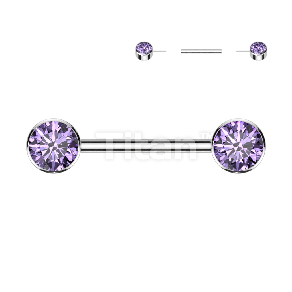Implant Grade Titanium Threadless Push in Nipple Barbell With Forward Facing Bezel Set CZ Flat Ends