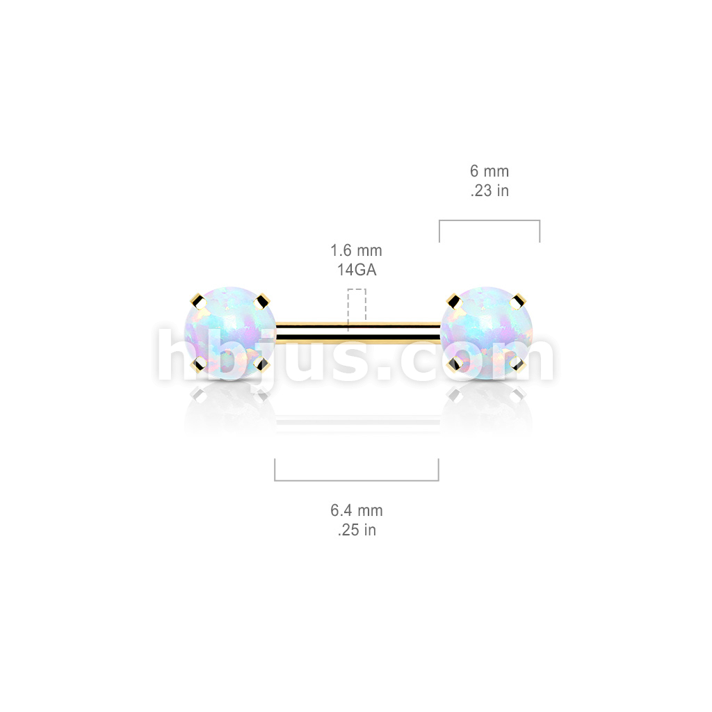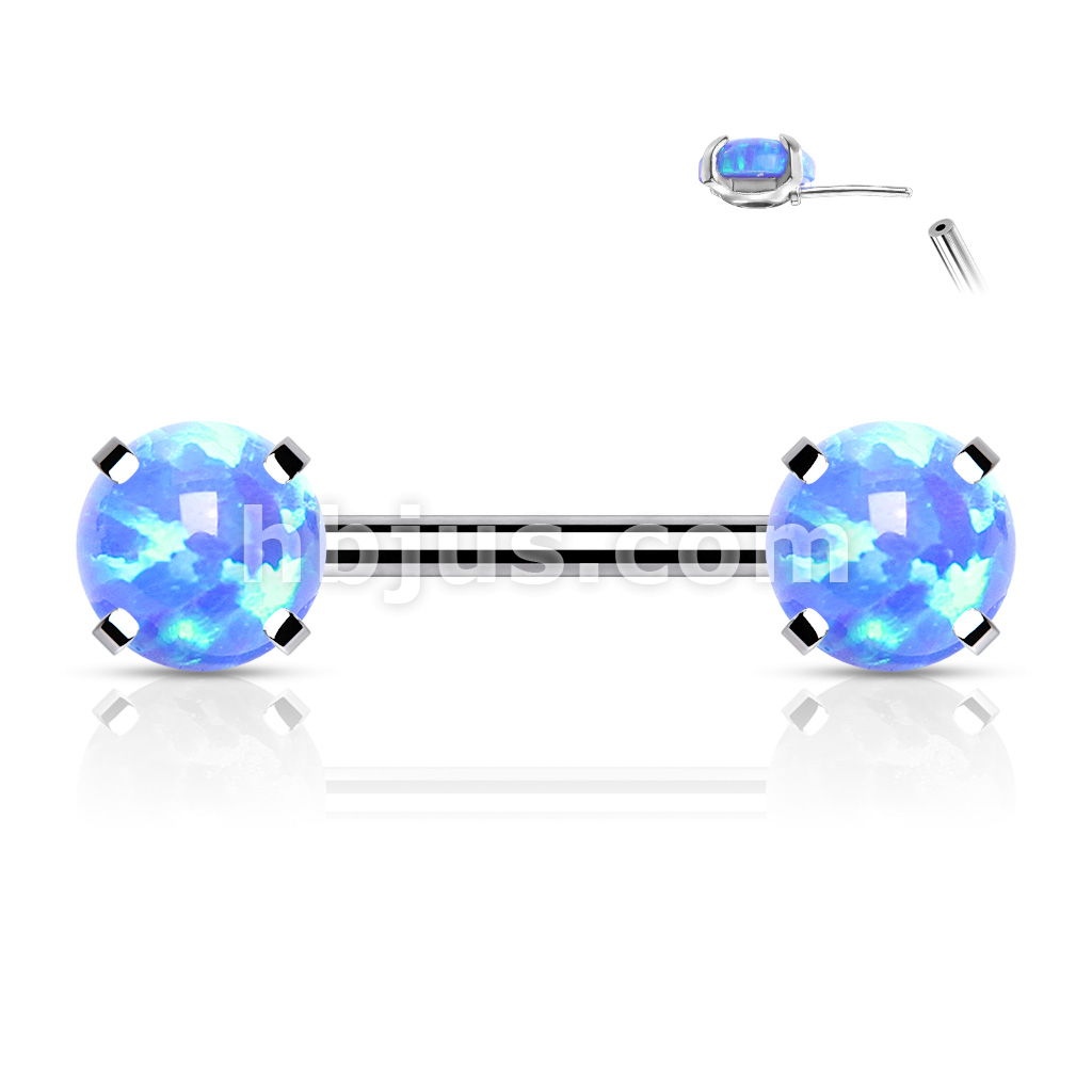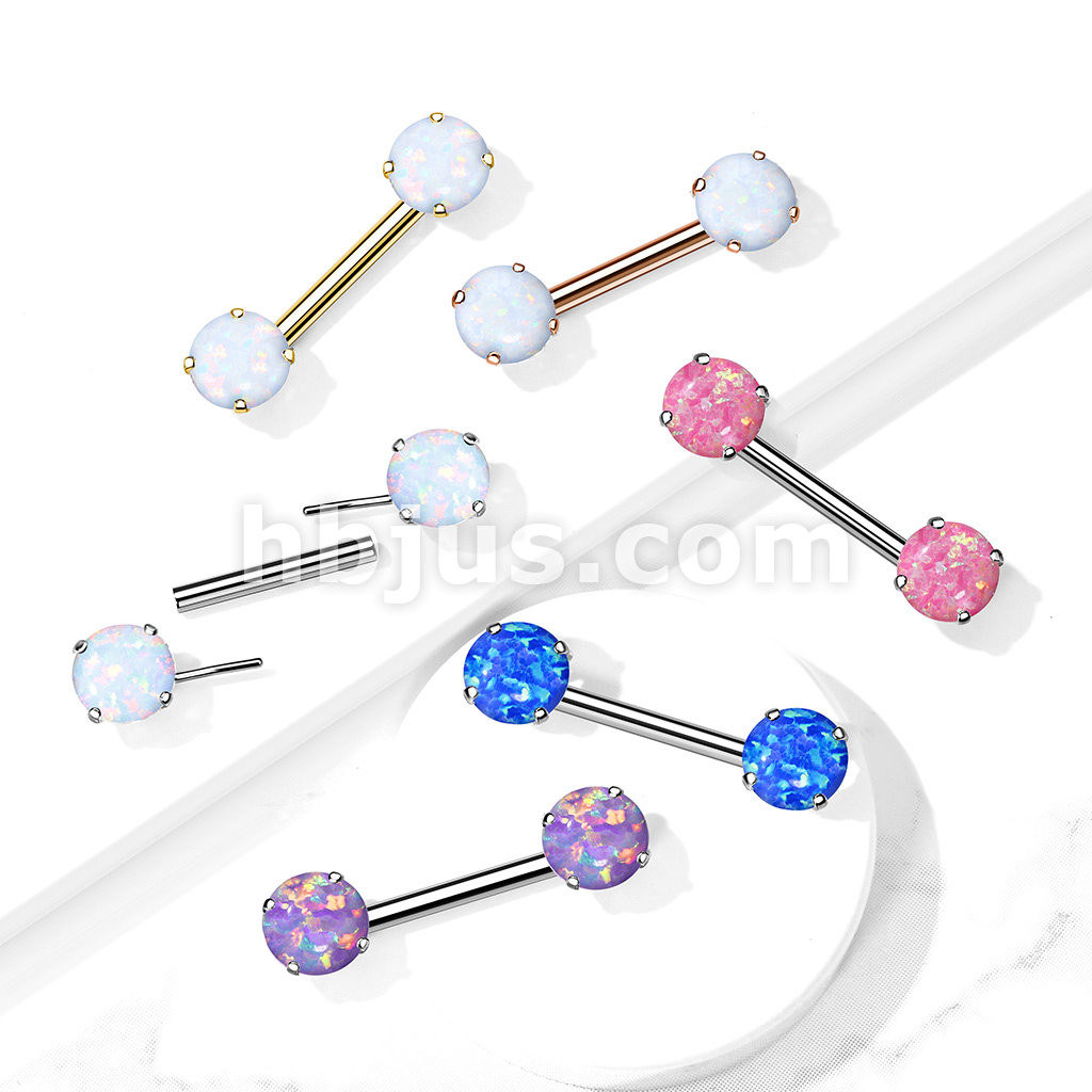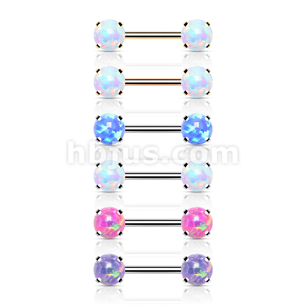 316L Surgical Steel Threadless Push in Nipple Barbells with Prong Set Round Opal Ends