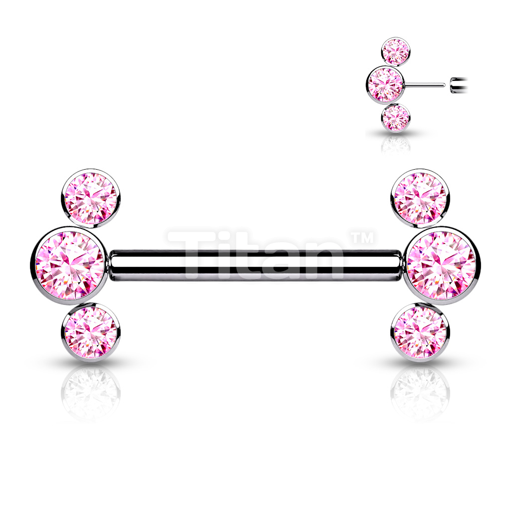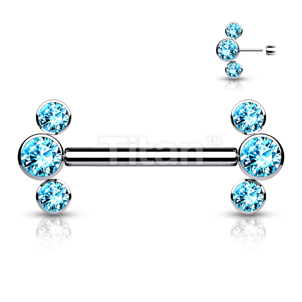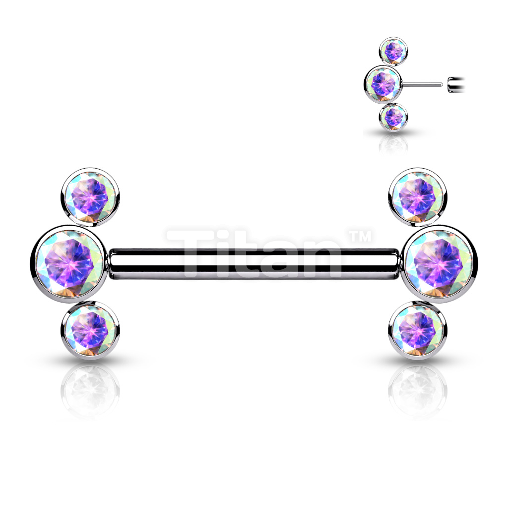 Implant Grade Titanium Threadless Push in Nipple Barbell With 3 Bezel Set CZ Ends