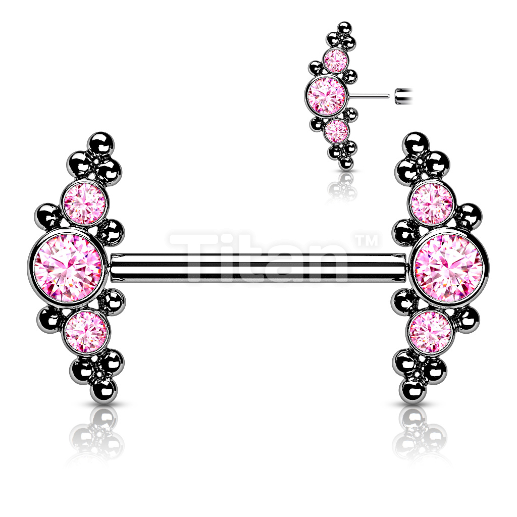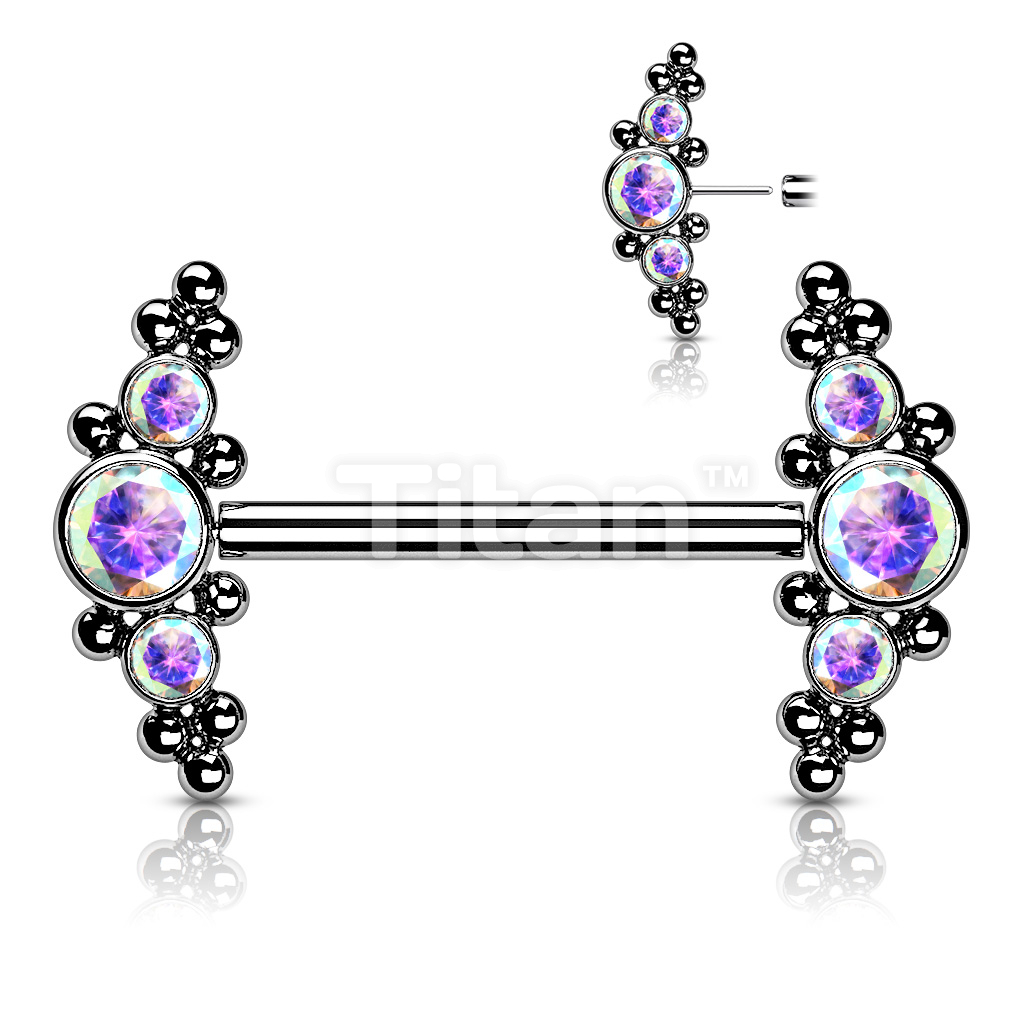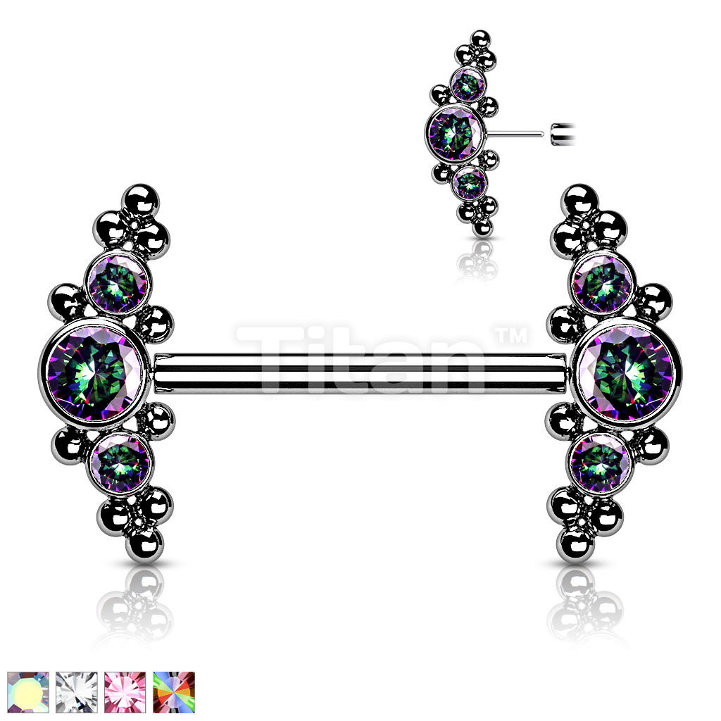 Implant Grade Titanium Threadless Push in Nipple Barbell With 3 CZ and Ball Cluster Ends