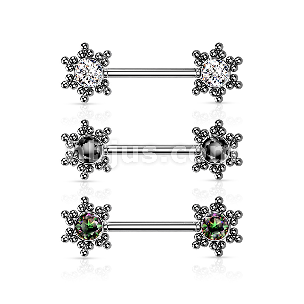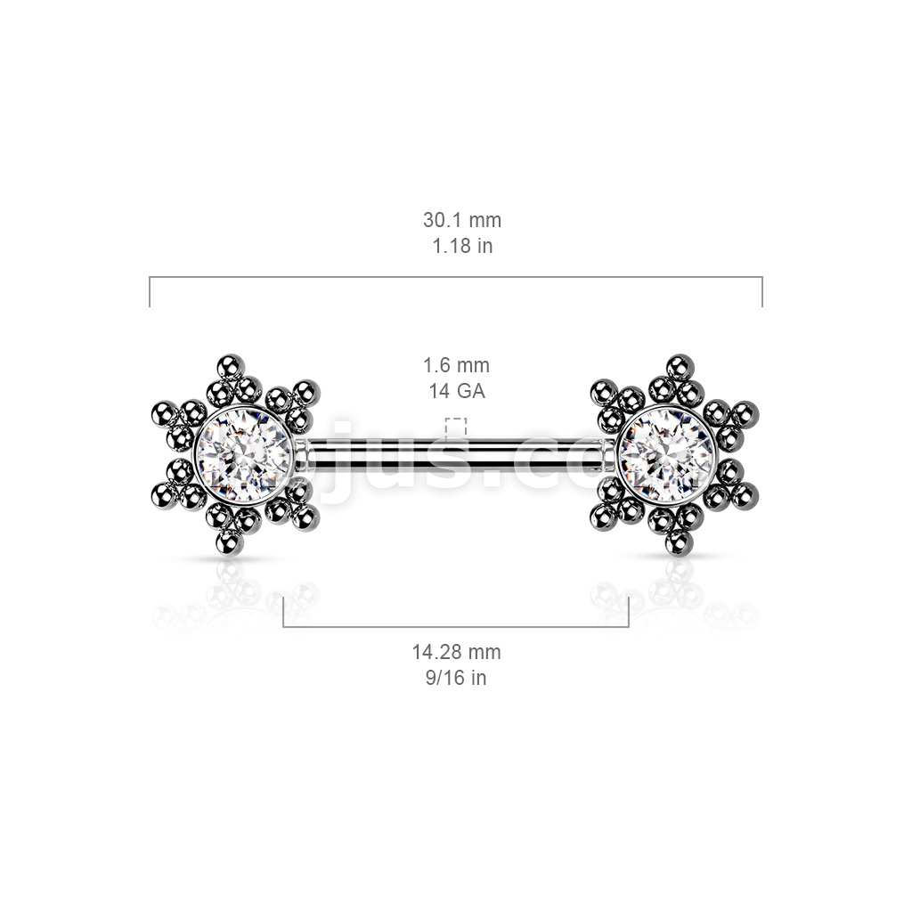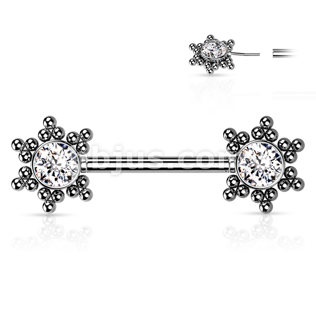 316L Surgical Steel Threadless Push In Nipple Barbell with CZ Center Star Cluster On Each Side