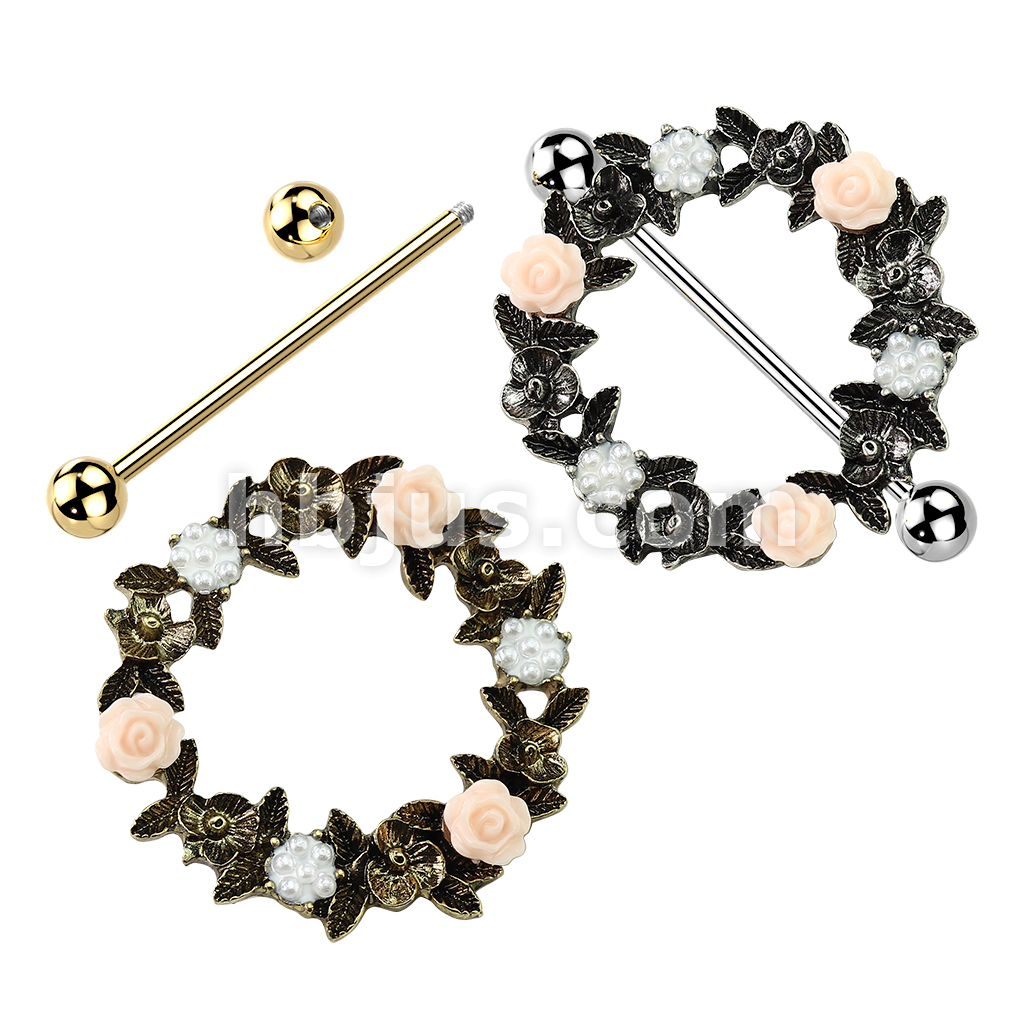 Floral Wreath 316L Surgical Steel Nipple Shield Ring