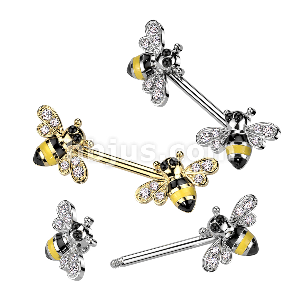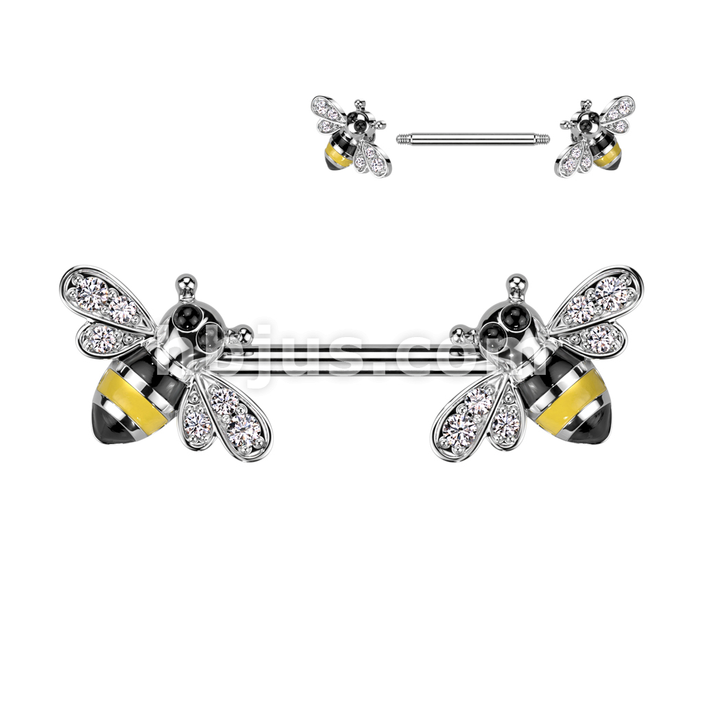 316L Surgical Steel Nipple Barbell With CZ Bee Ends