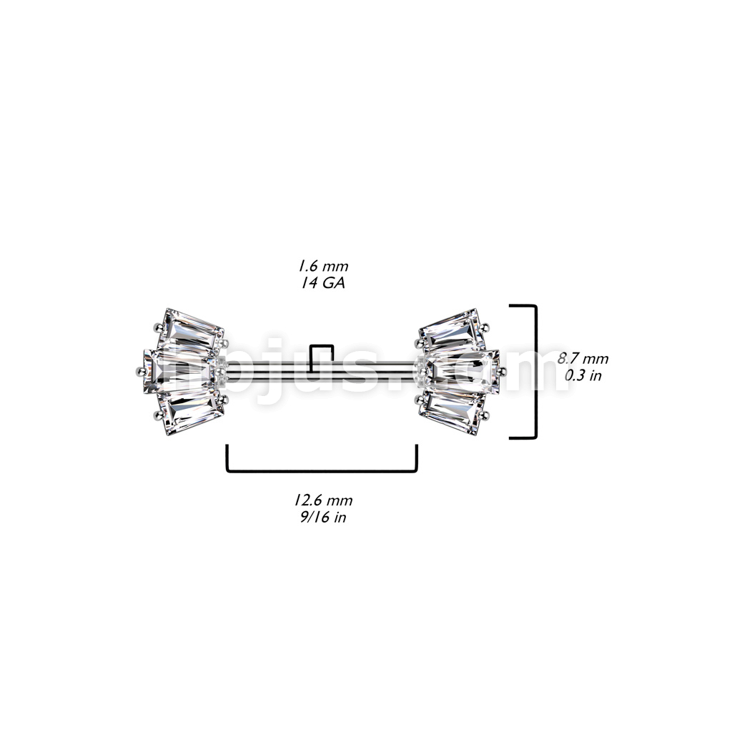 316L Surgical Steel Nipple Barbell With 5 Baguette CZ Set Crown Ends