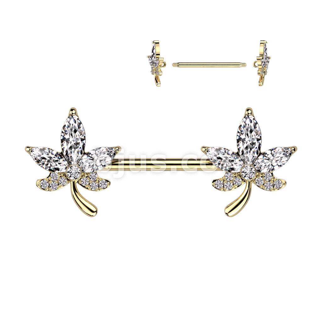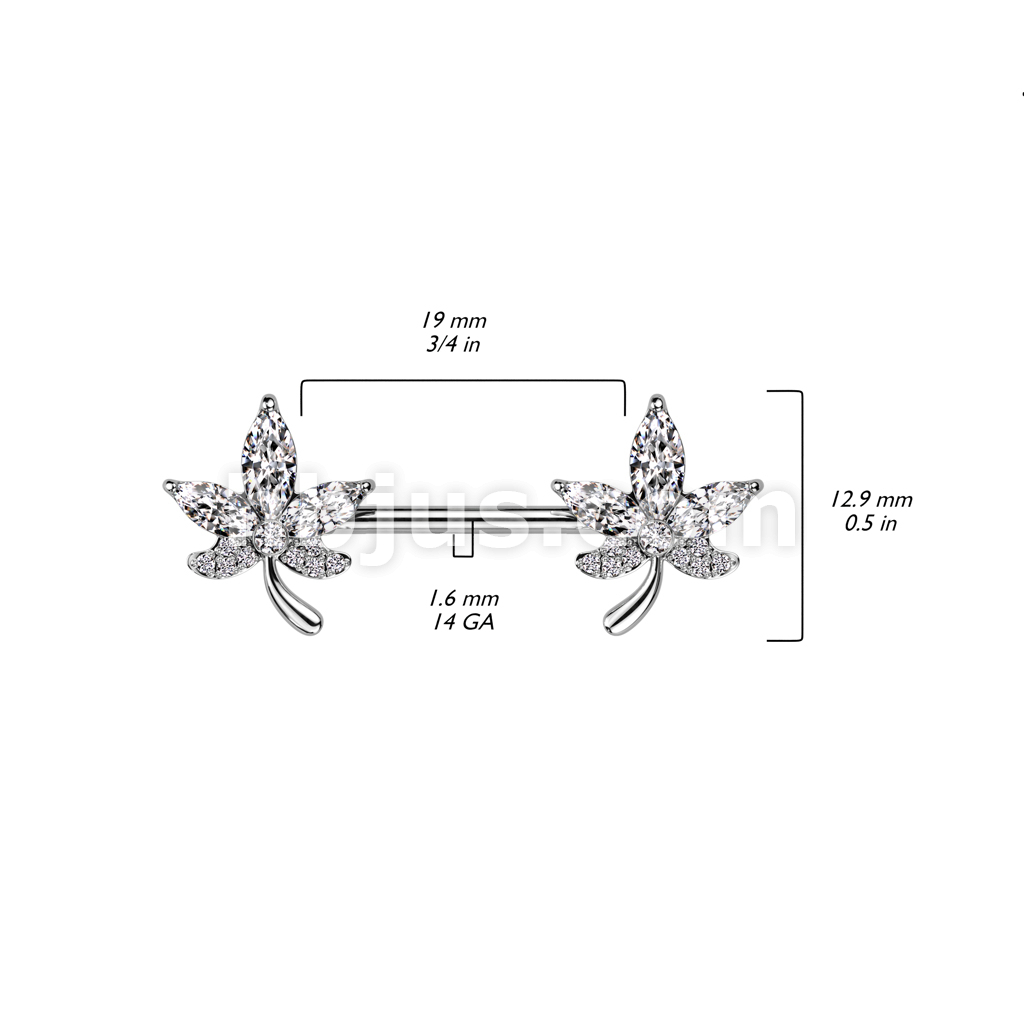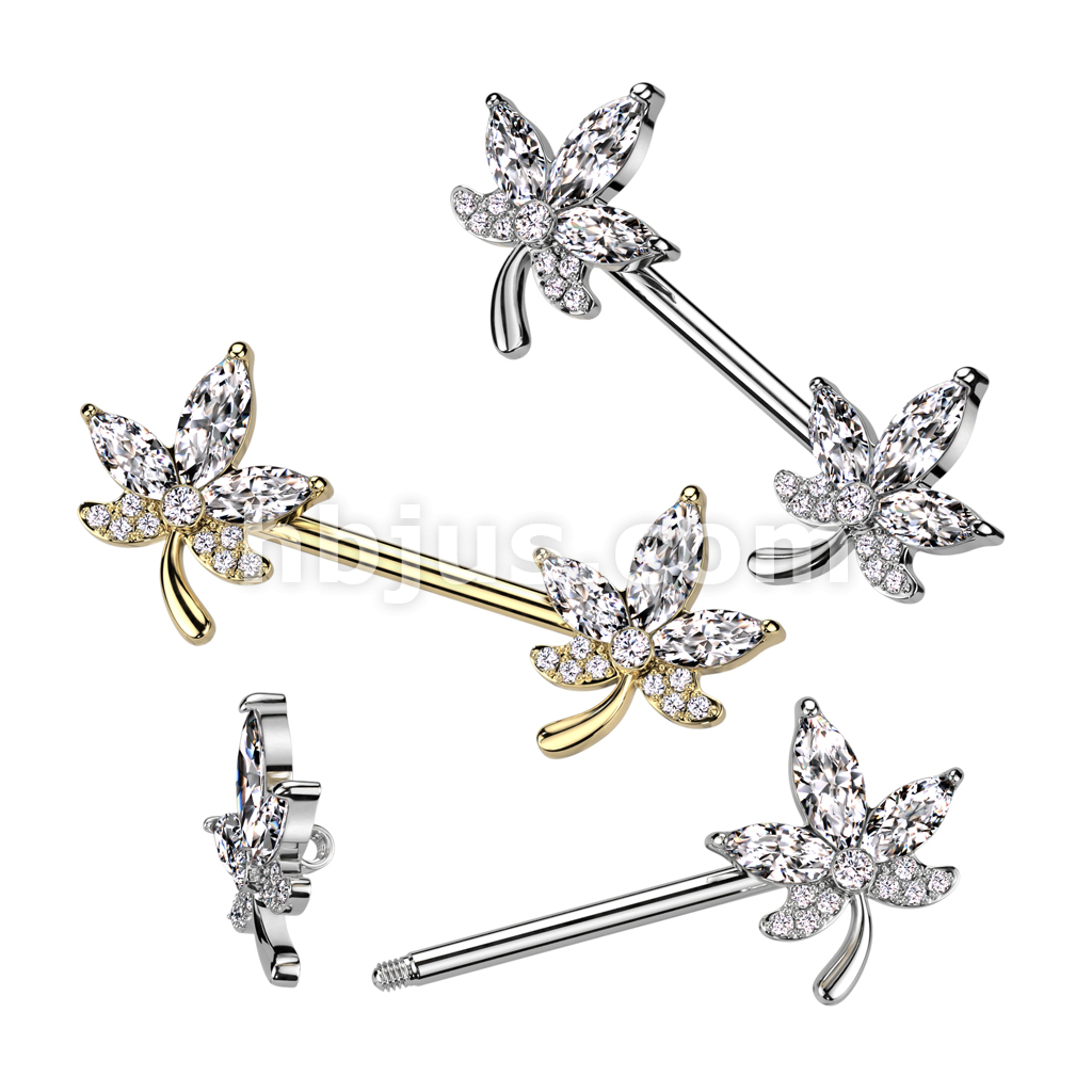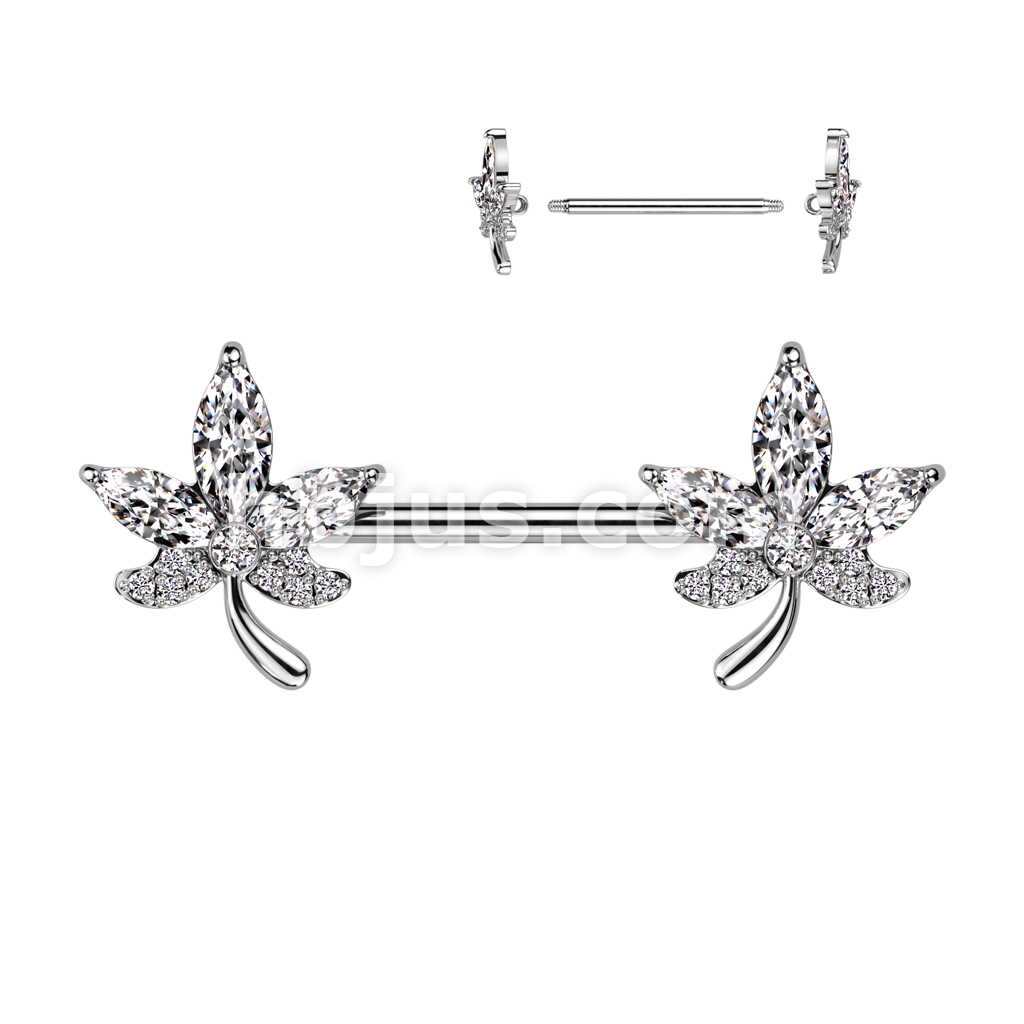 316L Surgical Steel Nipple Barbell With CZ Leaf Ends