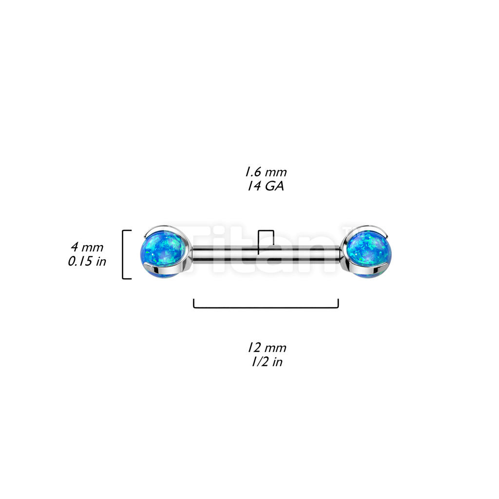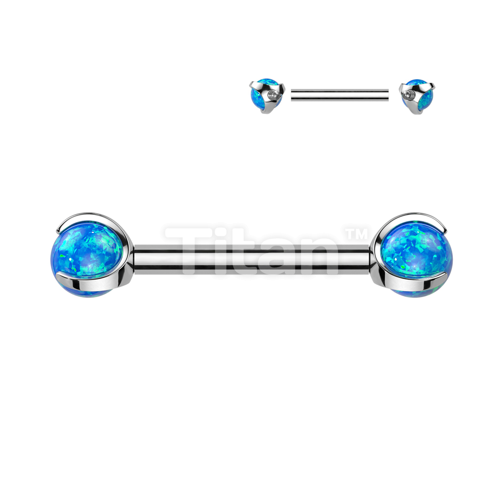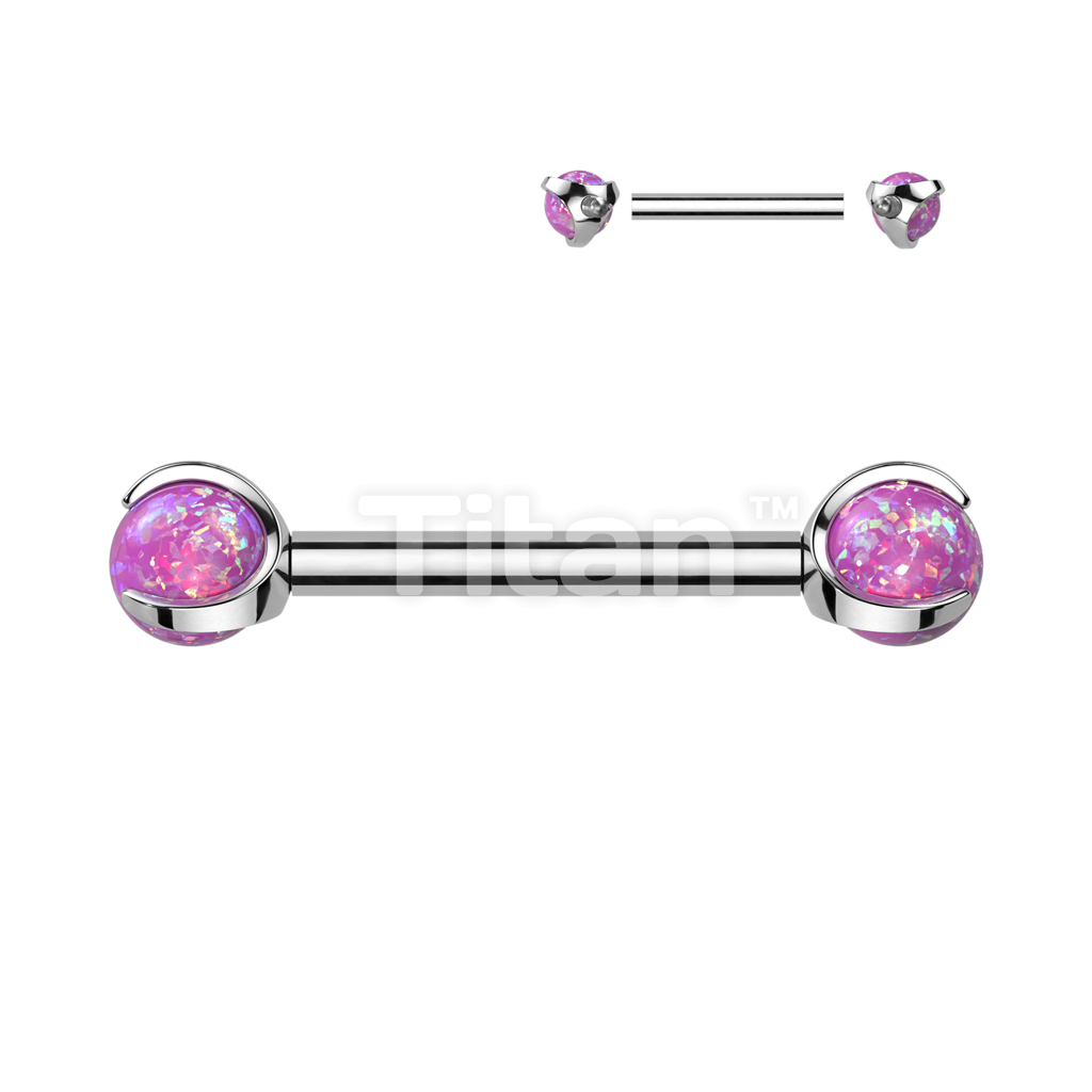 Implant Grade Titanium Internally Threaded Nipple Barbell With Claw Set Opal Ball Ends
