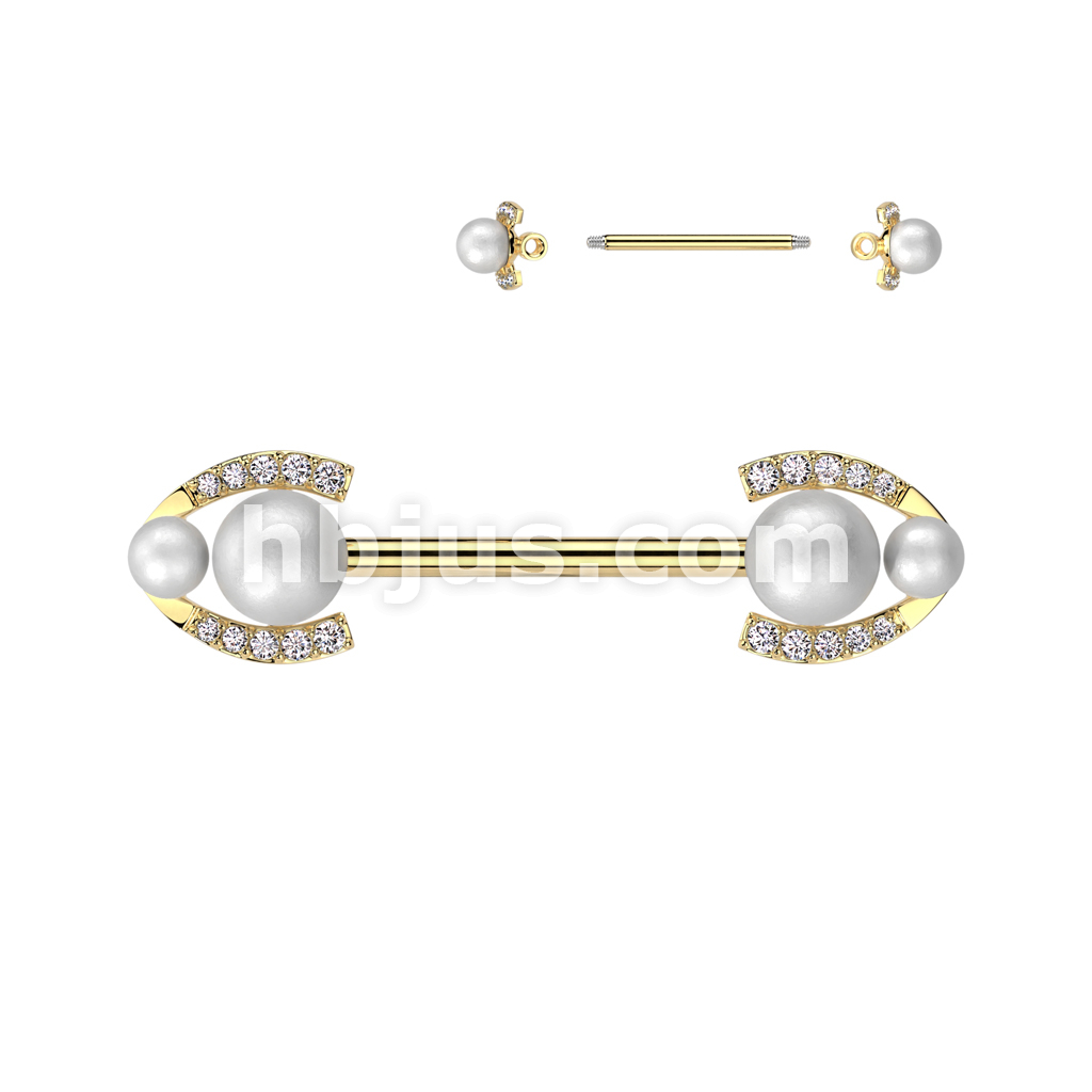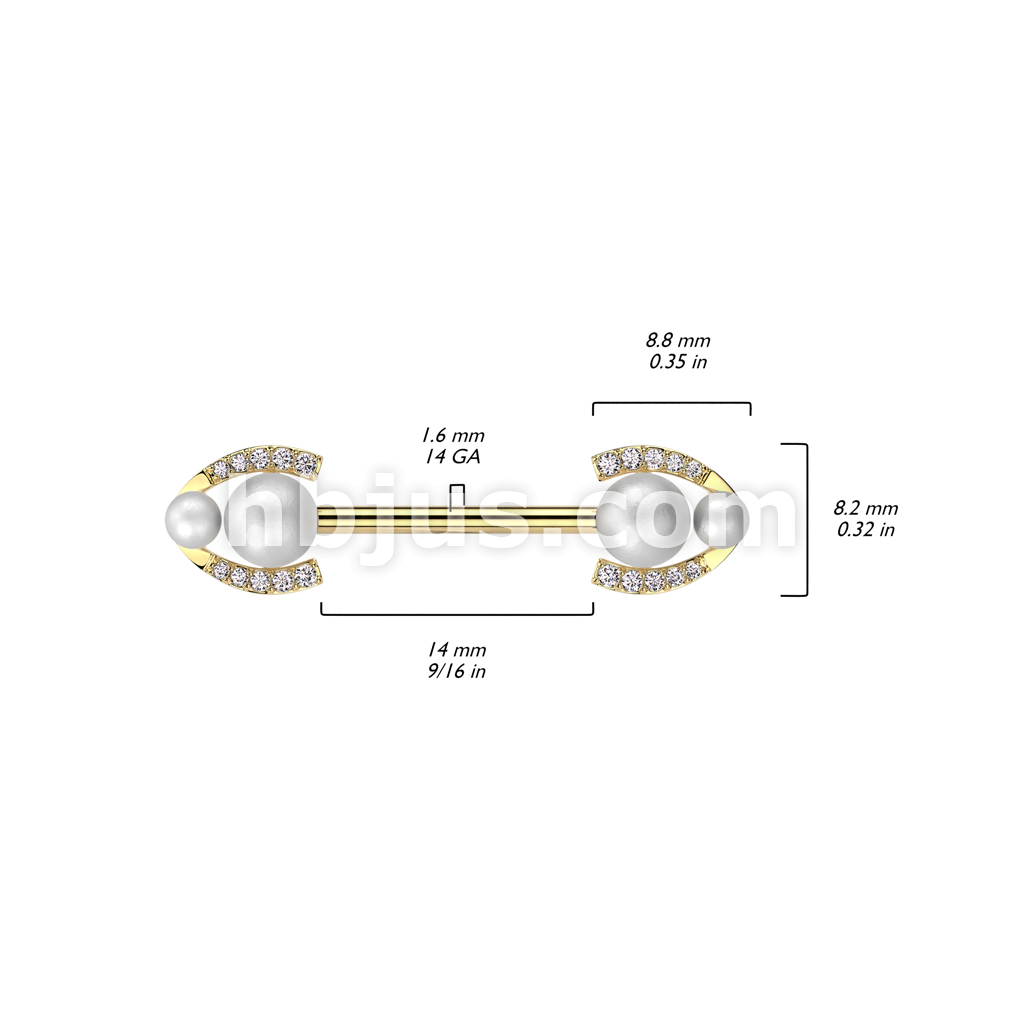 316L Surgical Steel Nipple Barbell With Double Pearl and Pave CZ Horseshoe Edge