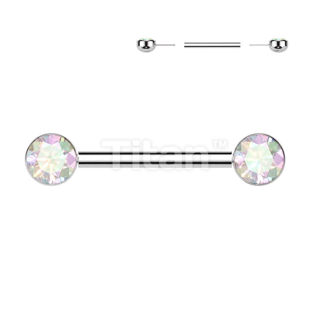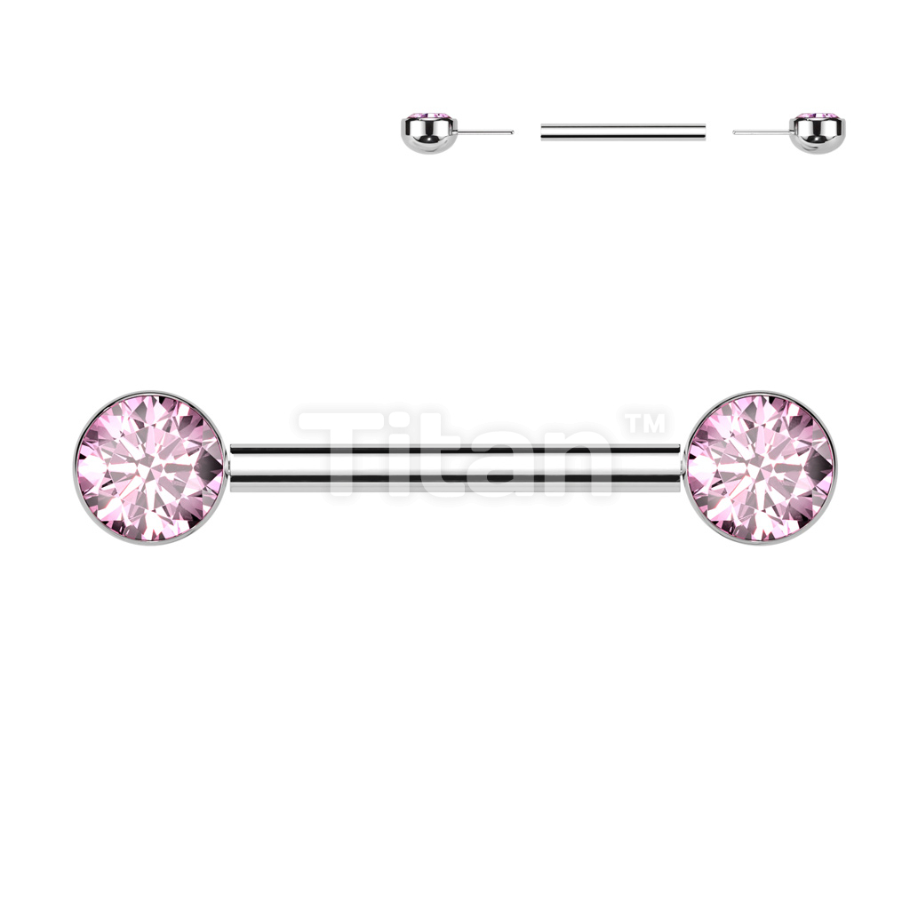 Implant Grade Titanium Threadless Push In Nipple Barbell With Bezel Set CZ Ends