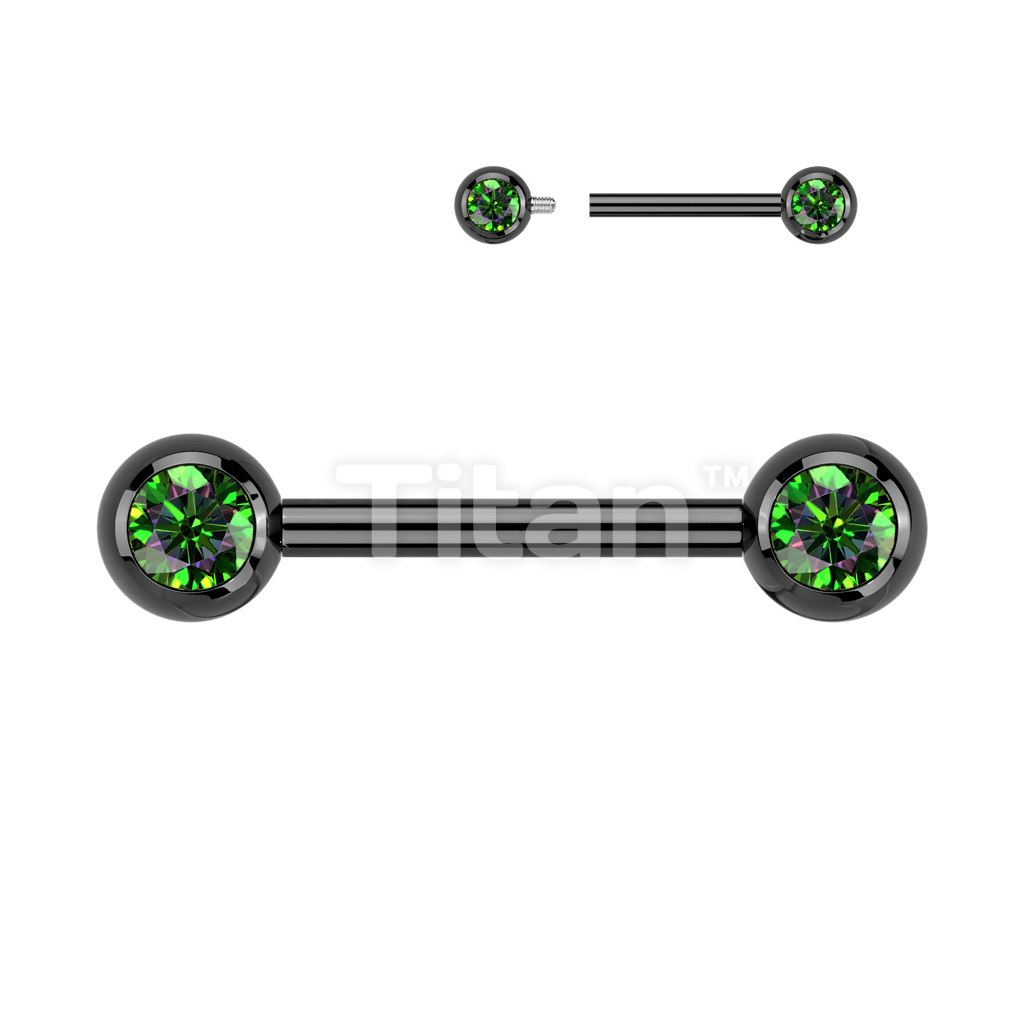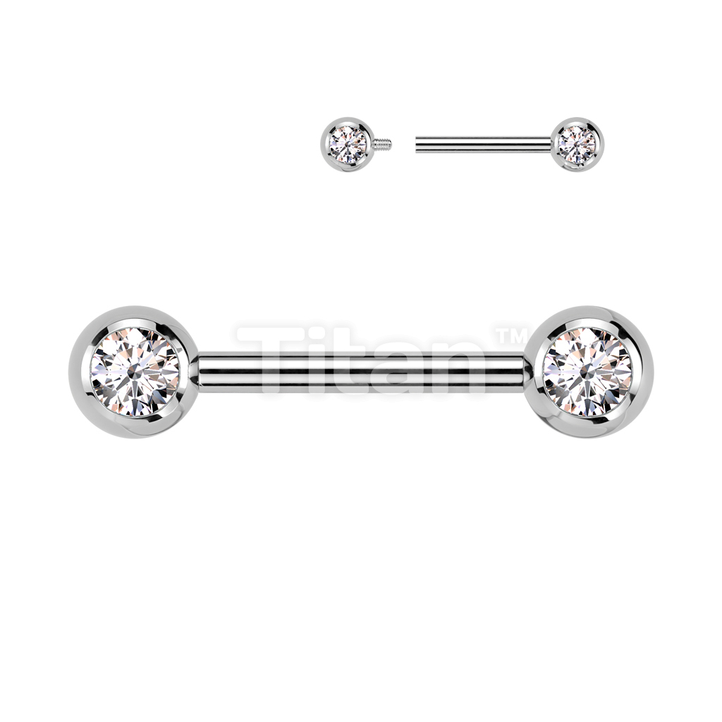 Implant Grade Titanium Internally Threaded Nipple Barbell With Pressed Fit CZ Set Ball Ends
