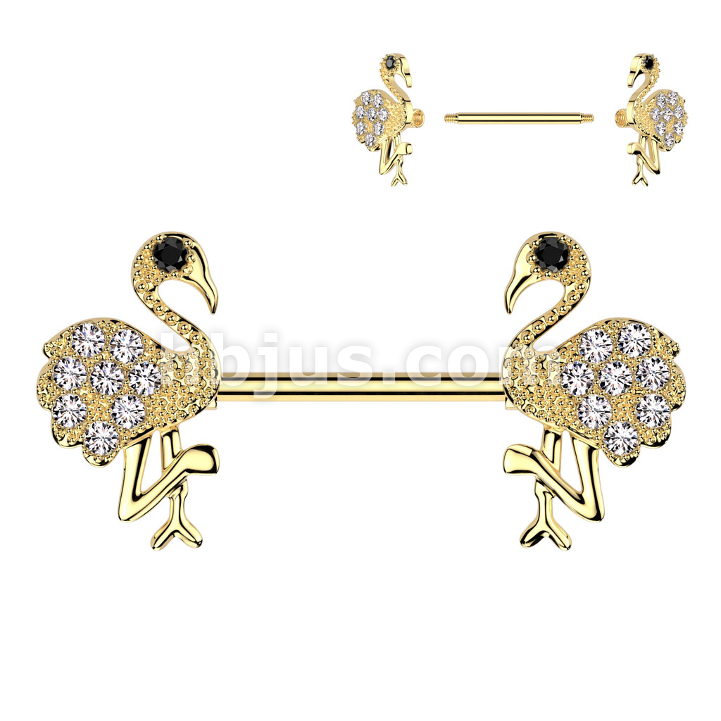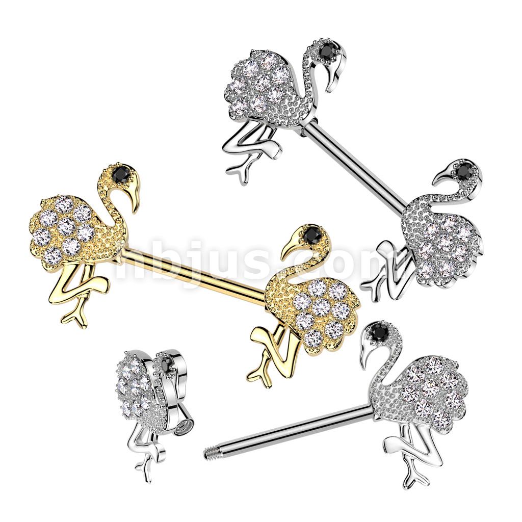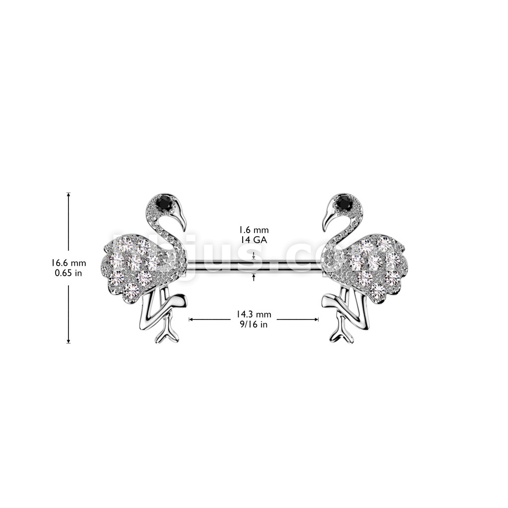 316L Surgical Steel Nipple Barbell With CZ Flamingo Ends
