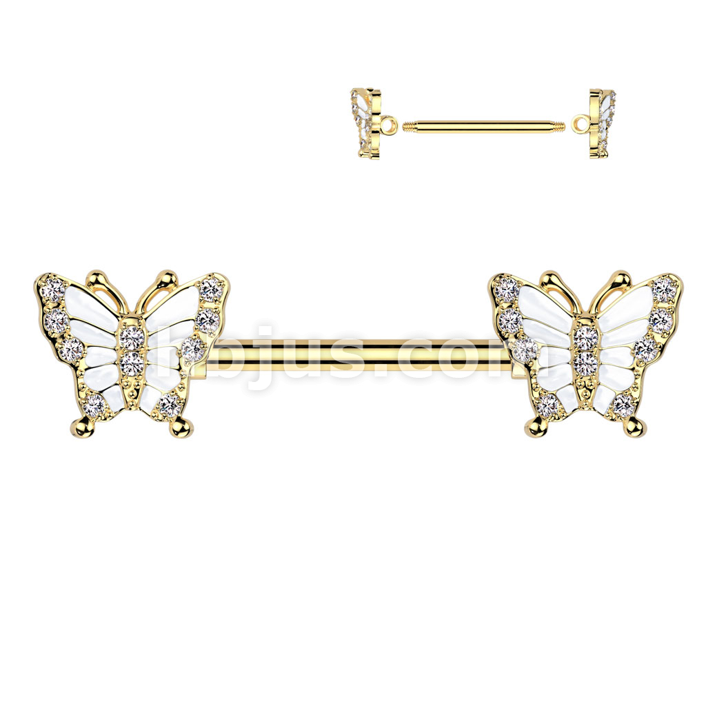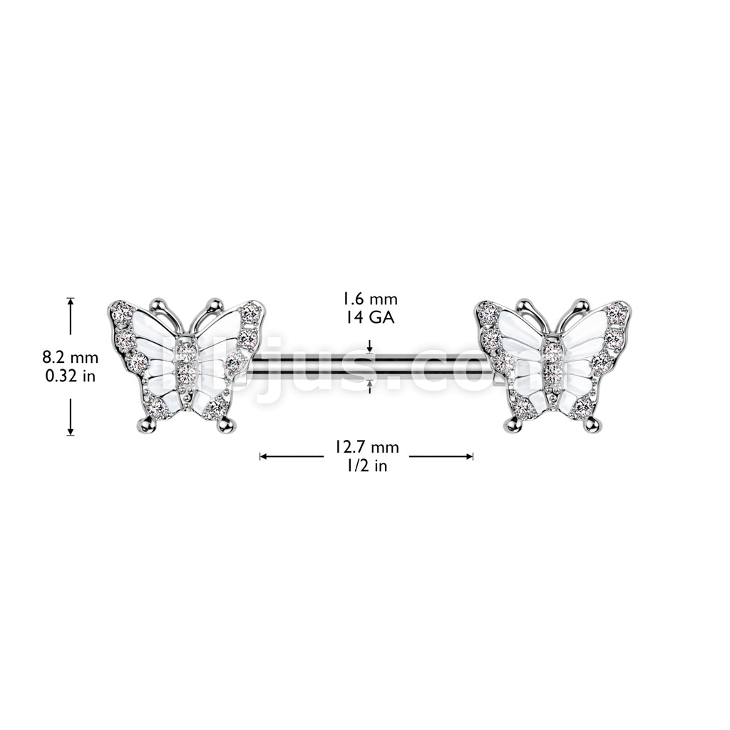 316L Surgical Steel Nipple Barbell With Pave CZ Butterfly Ends