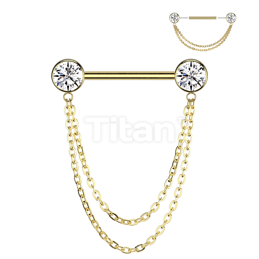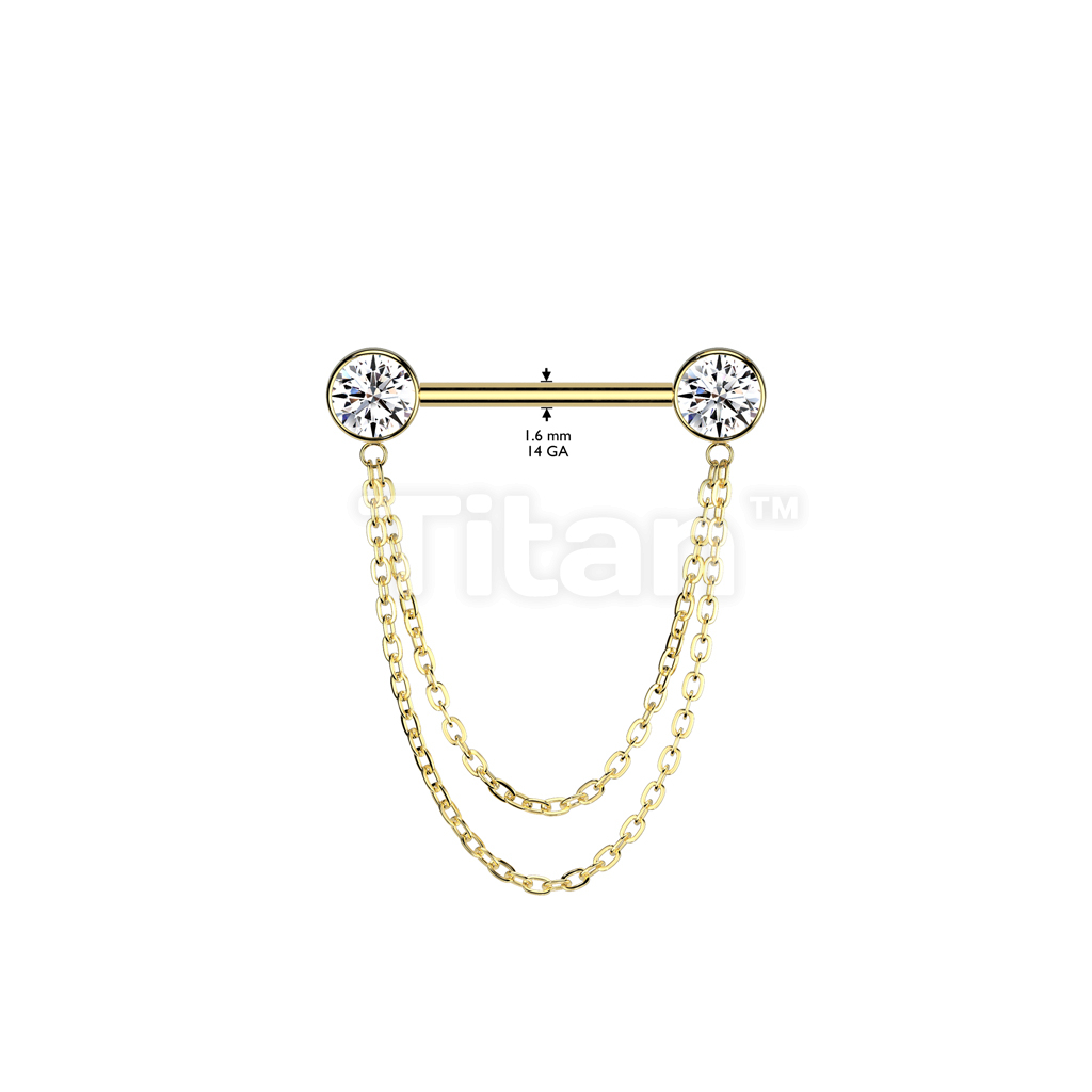 Implant Grade Titanium Threadless Push In Nipple Barbell With Double Chain Dangle