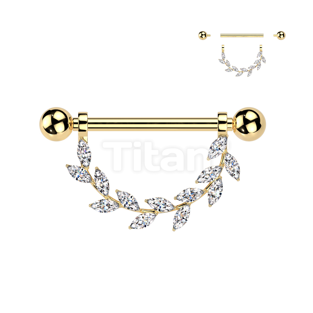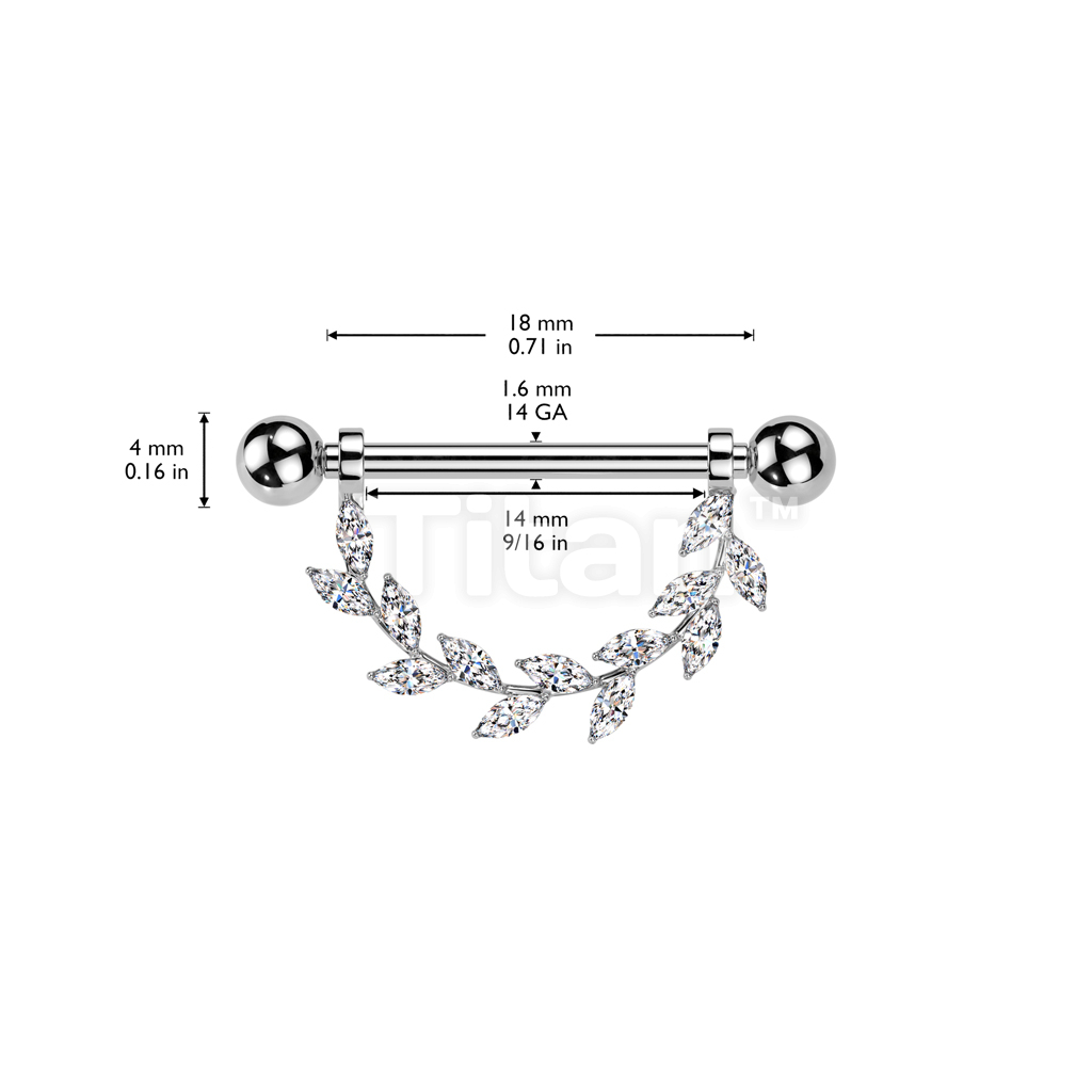 Implant Grade Titanium Internally Threaded Nipple Barbell With Marquise CZ Dangle