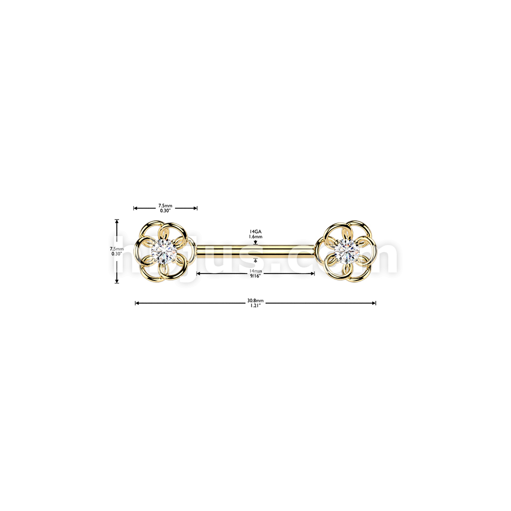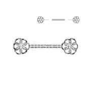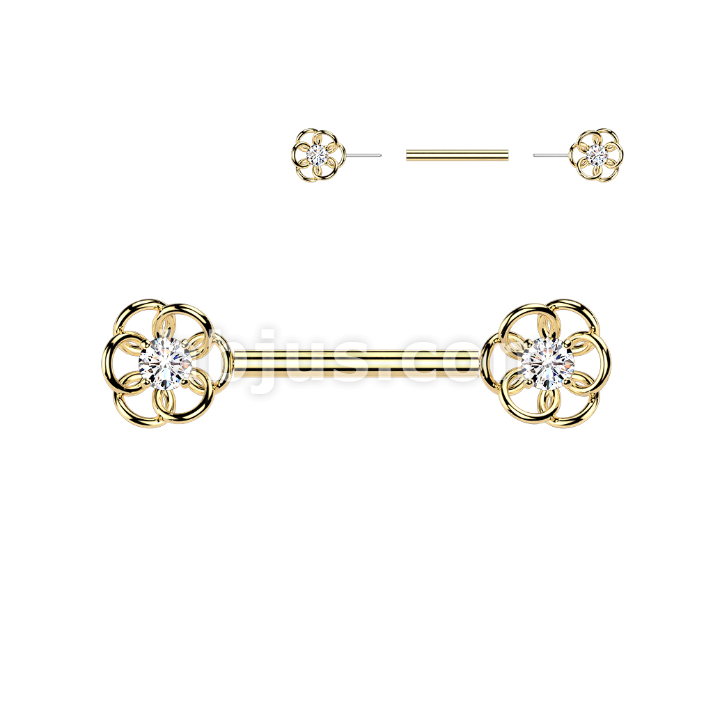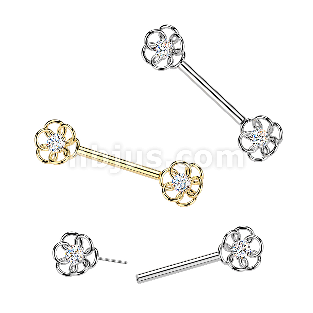 316L Threadless Push In CZ Center Flower Nipple Barbell
