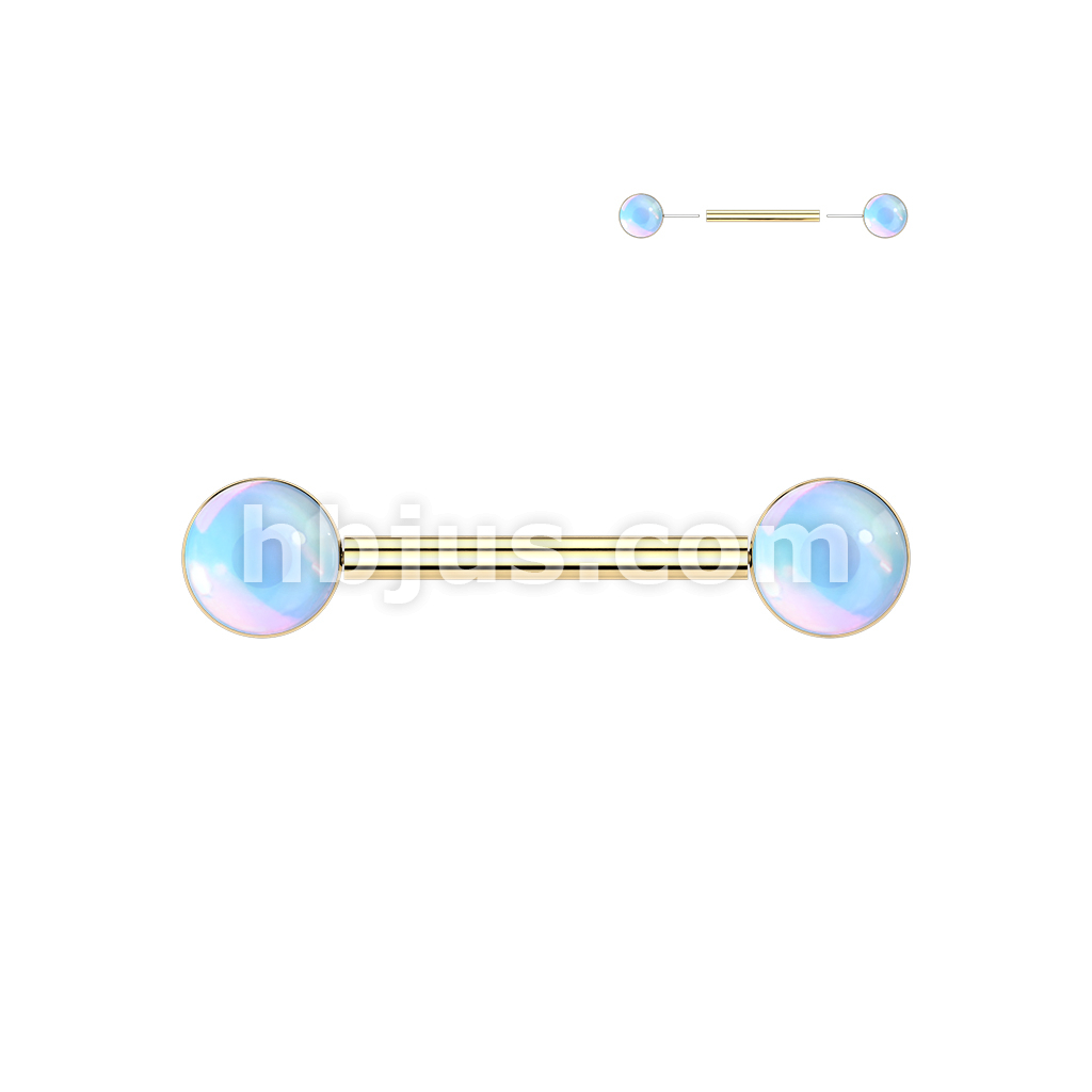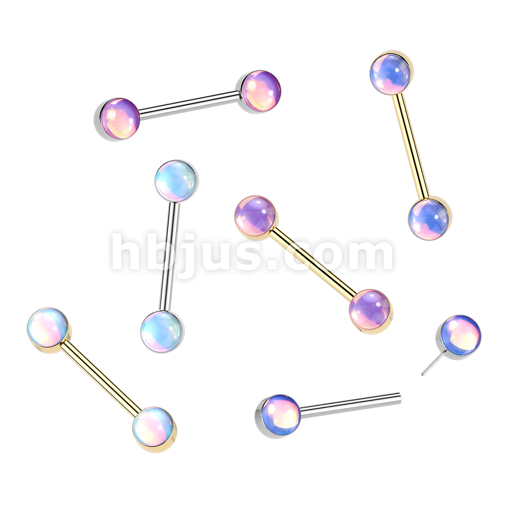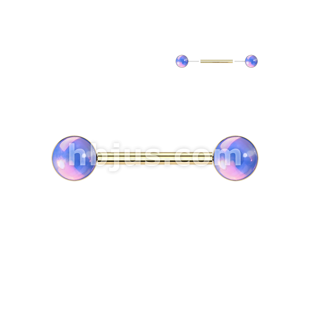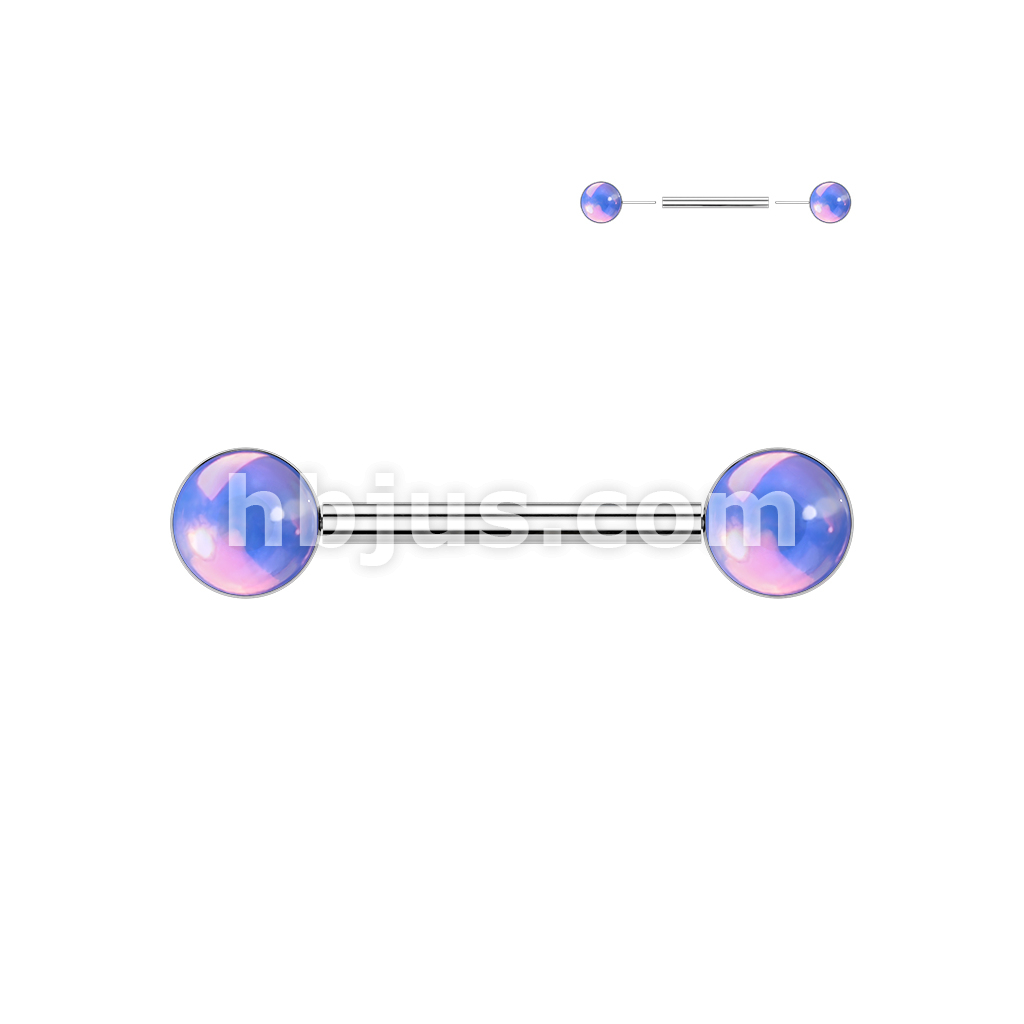 316L Threadless Push In Nipple Barbell With Round Iridescent Ends