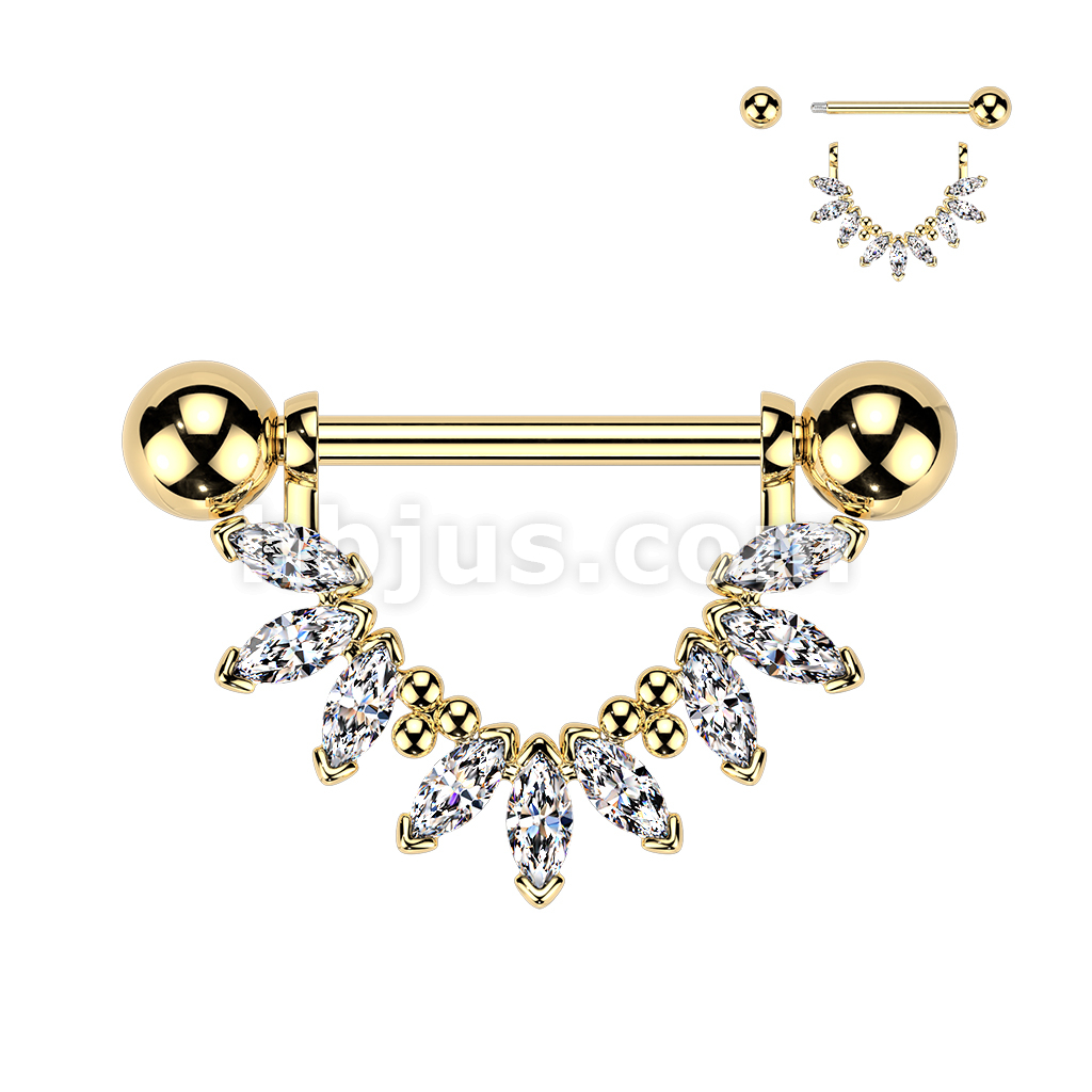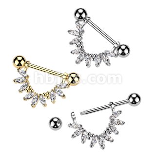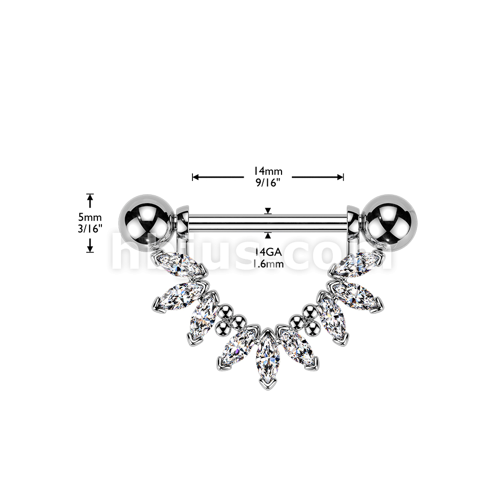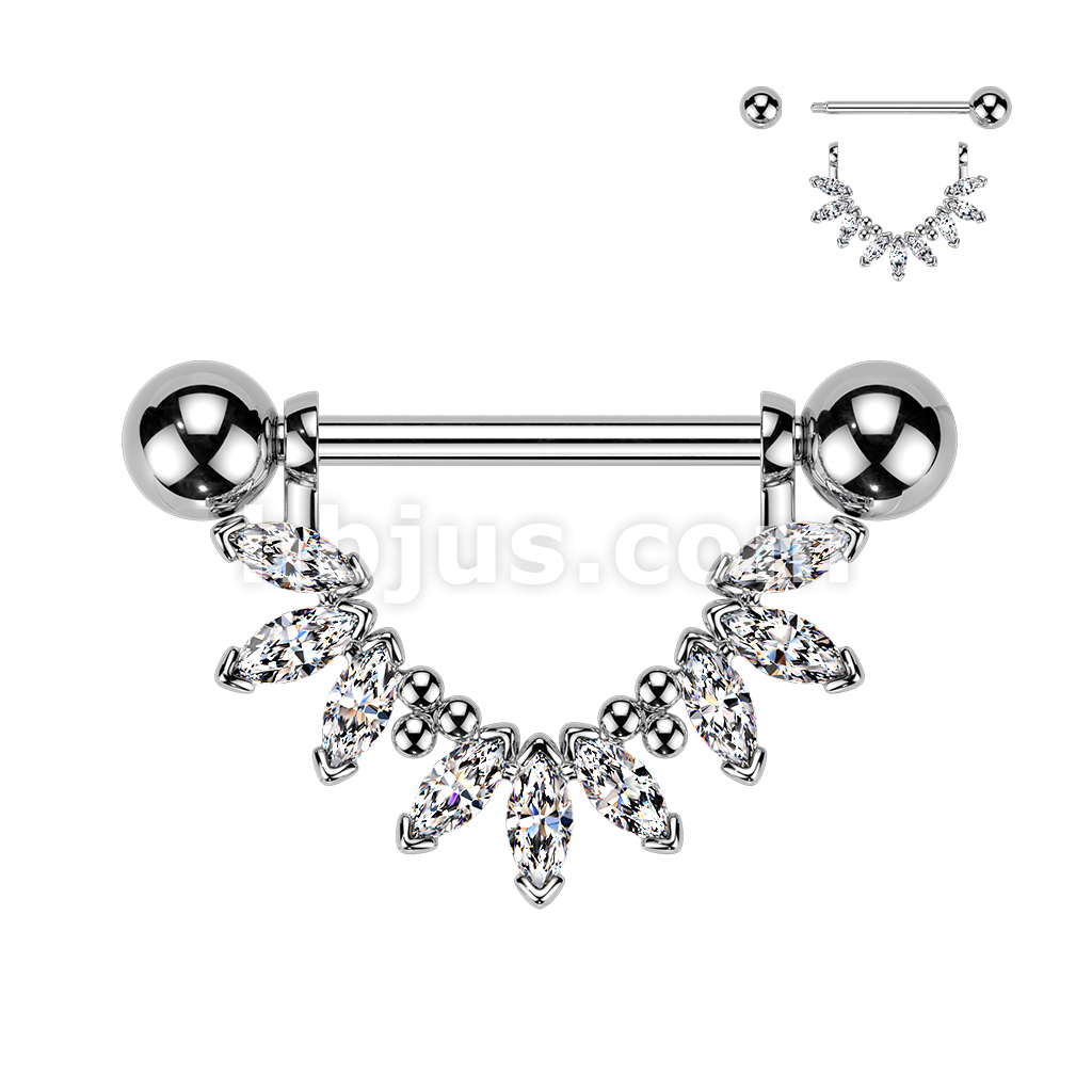 316L Nipple Barbell With Marquise CZ Fan Dangle