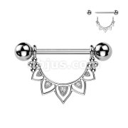 316L Nipple Barbell With CZ Filigree Fan Dangle