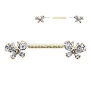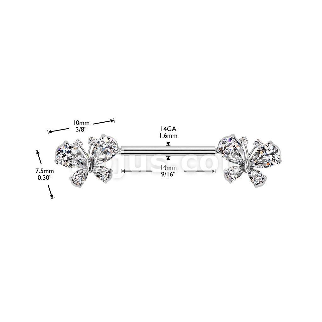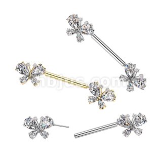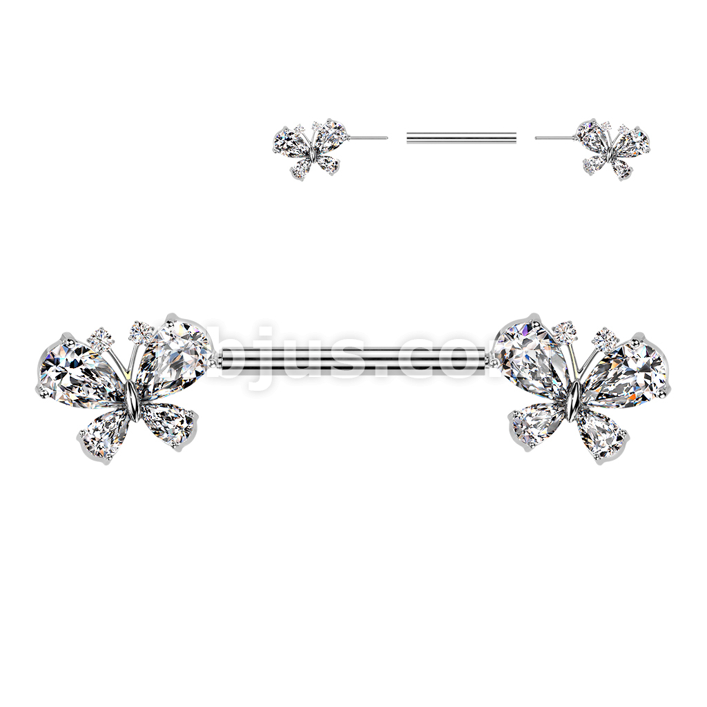 316L Threadless Push In Pave CZ Butterfly Nipple Barbell