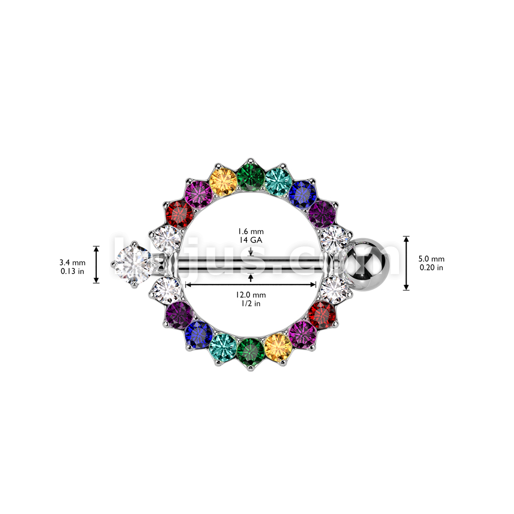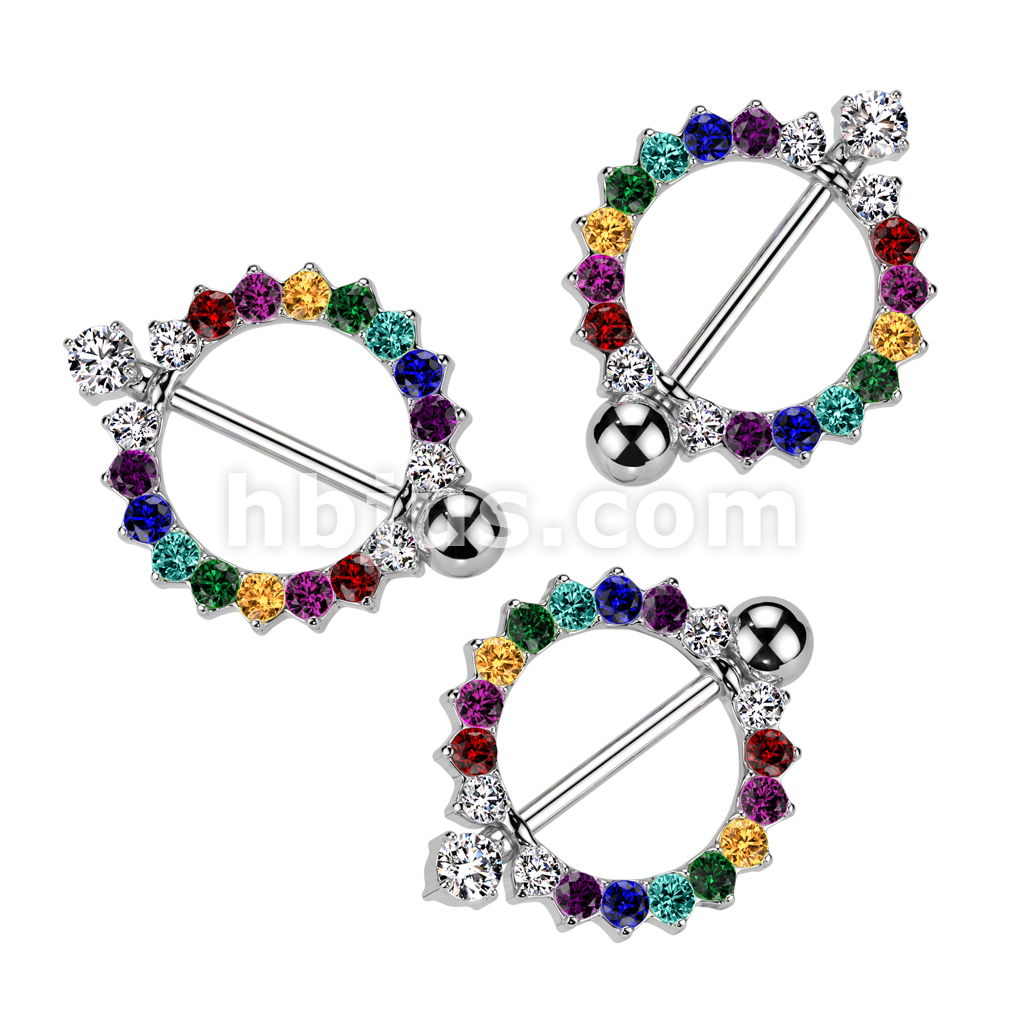Rainbow CZ Set Round With Prong Set CZ End 316L Surgical Steel Nipple Rings