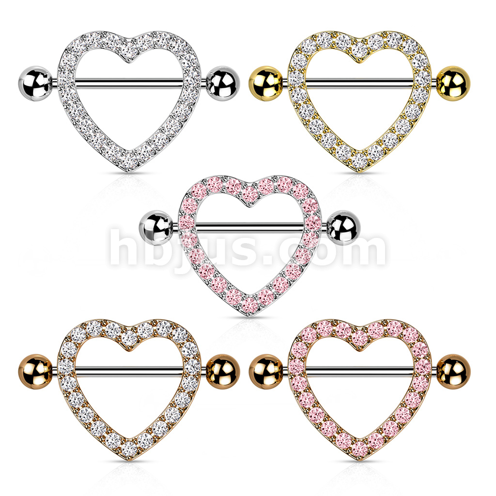 Gem Paved Heart Nipple Shield