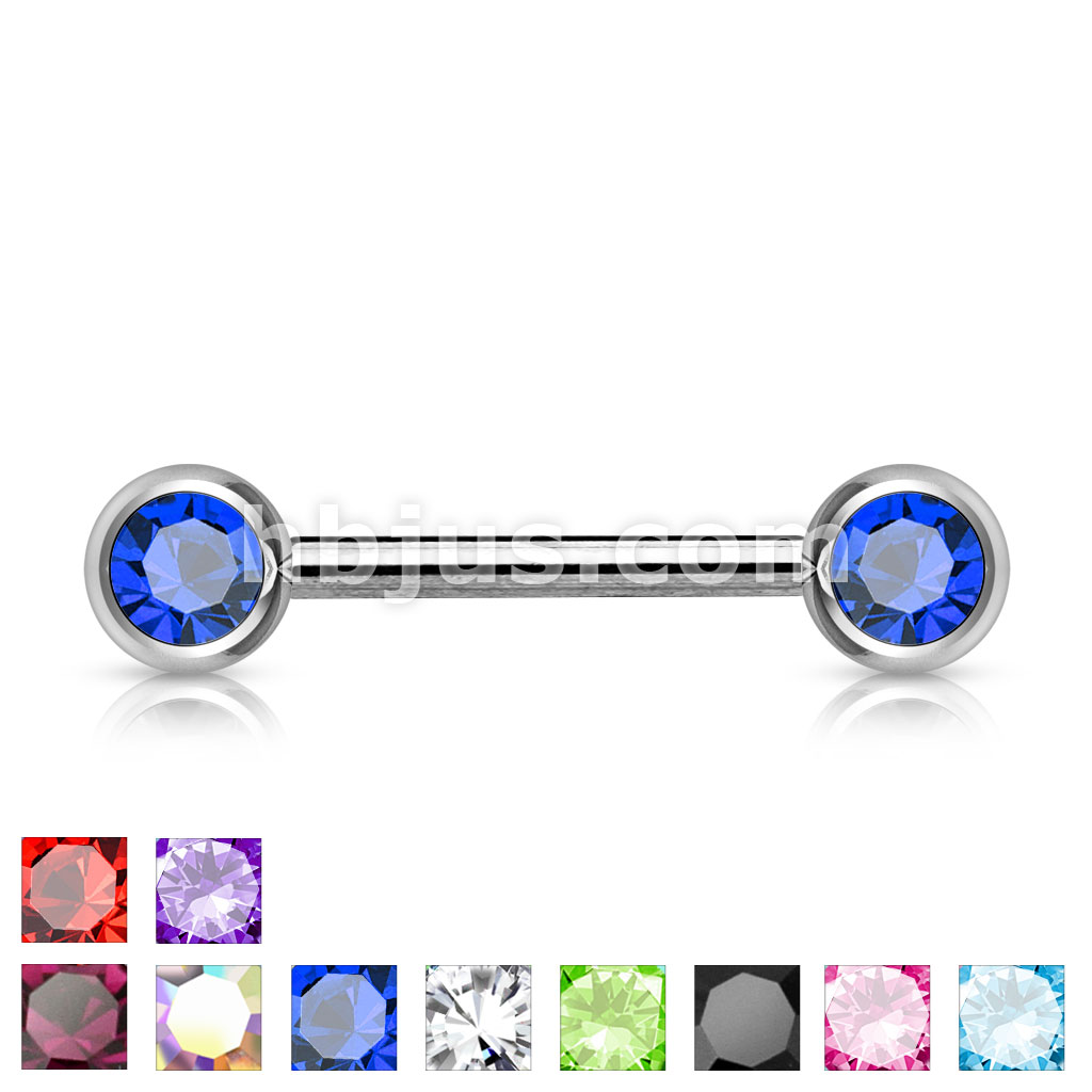 Double Front Facing Gem 316L Surgical Steel Barbell/Nipple Bar