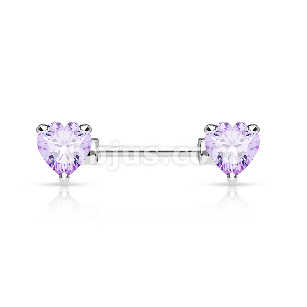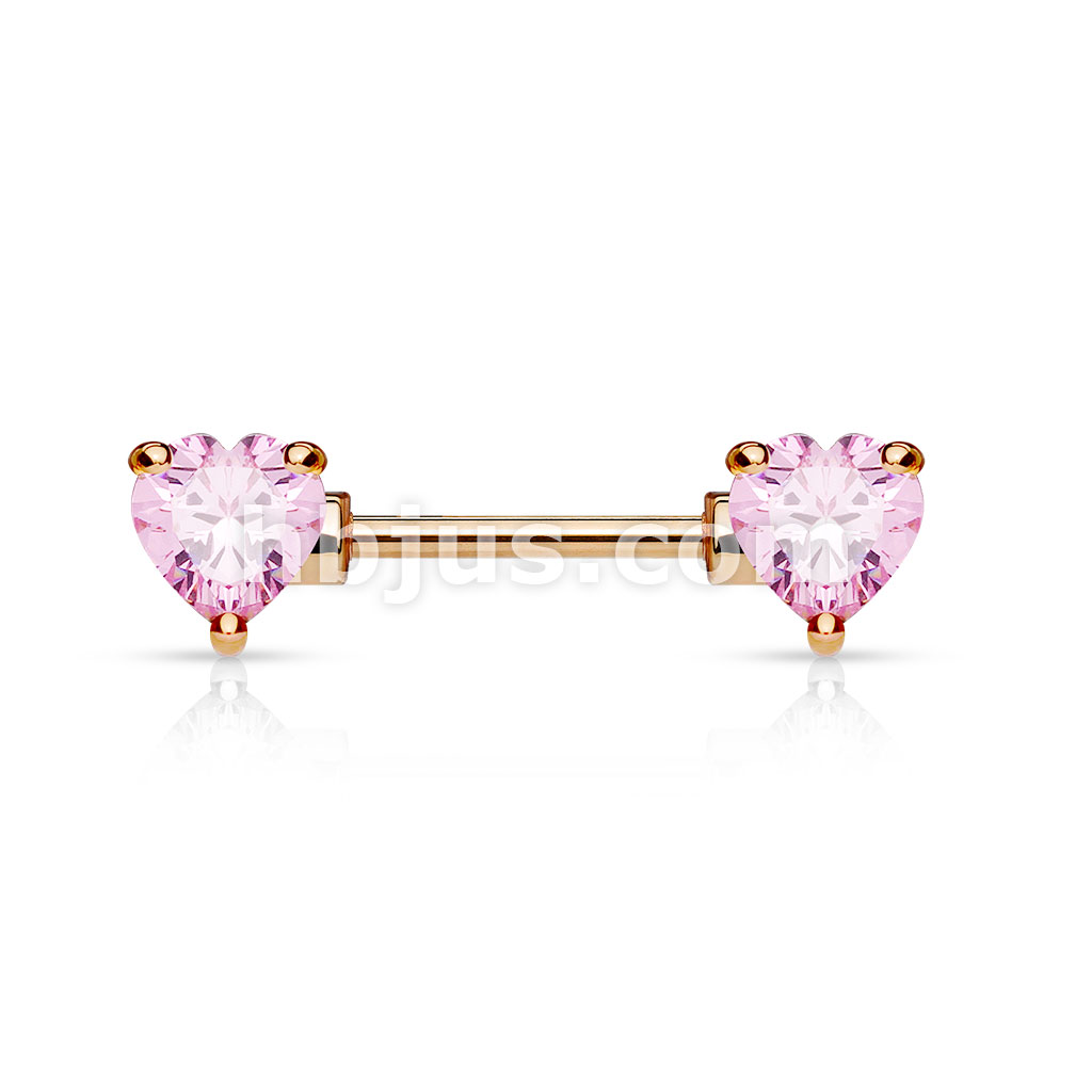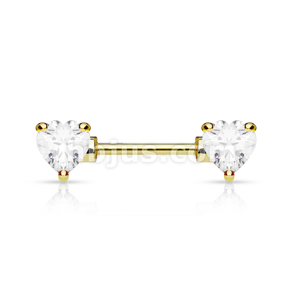 Double Front Facing Heart CZ Prong Set 316L Surgical Steel Nipple Bar