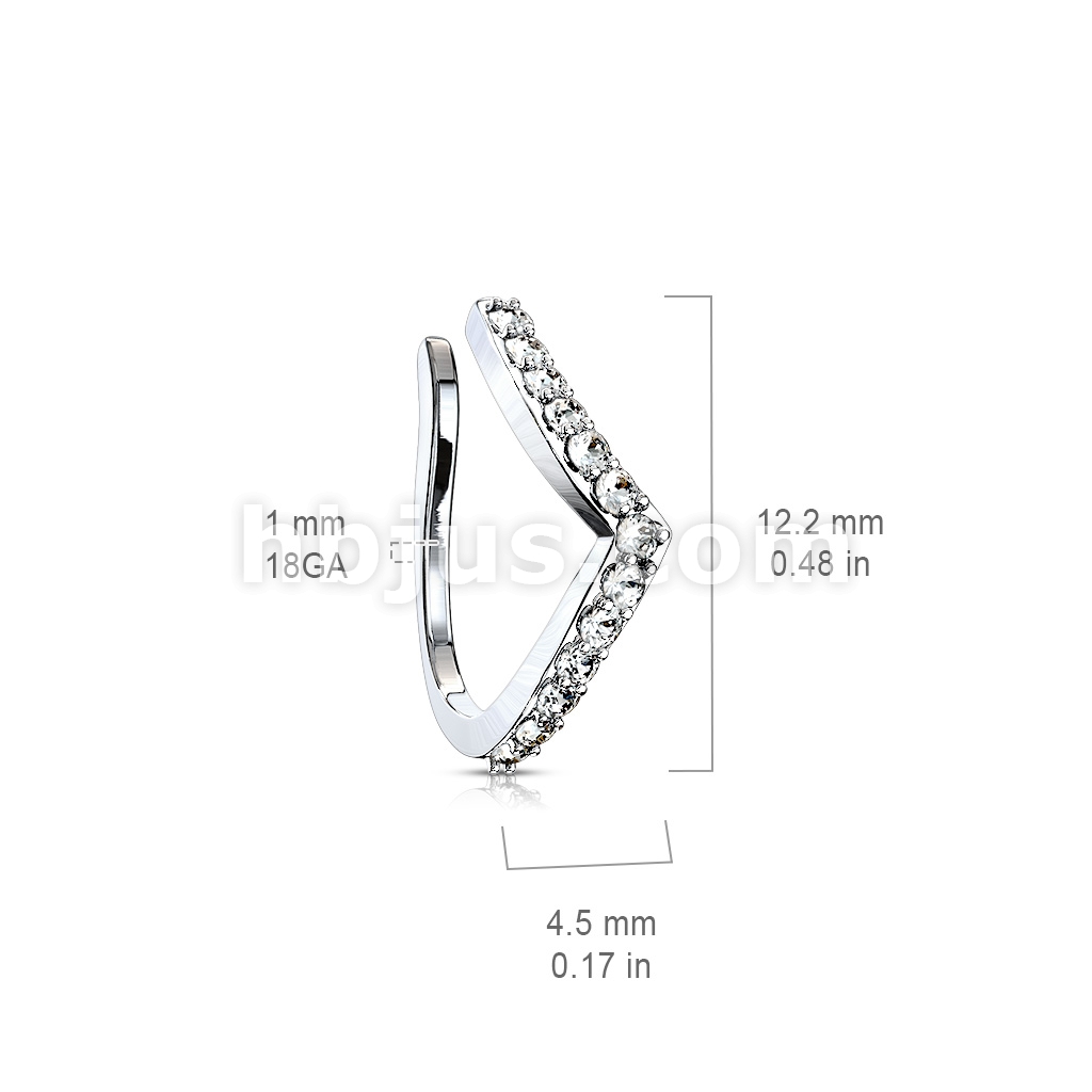 CZ Lined Chevron Non Piercing Nose/ Ear Clips