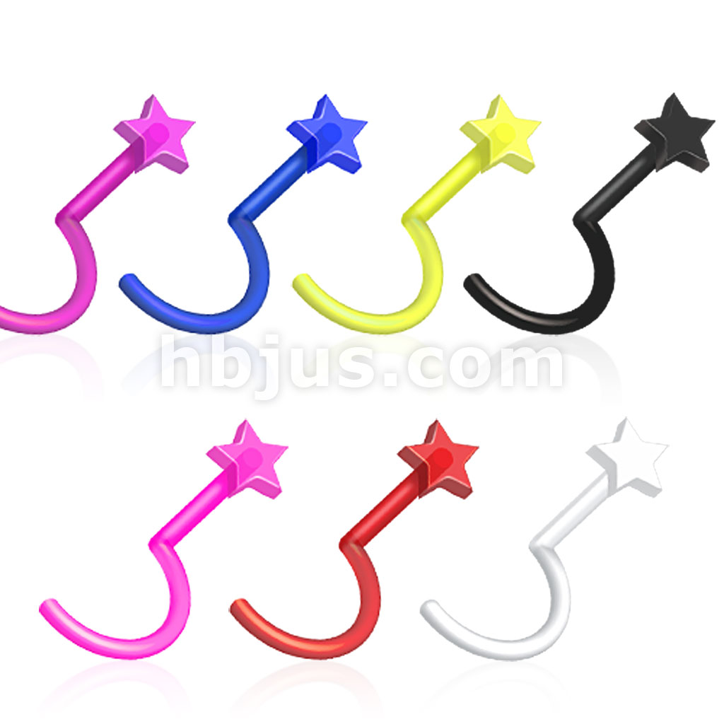 Flexible Acrylic Screw Nose Ring with Star Top 210pc Pack (30pcs x 7 colors)