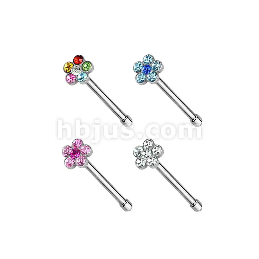 40 Pcs of 20 Gauge 316L Surgical Steel Mixed Color Gem Flower Nose Bone Package