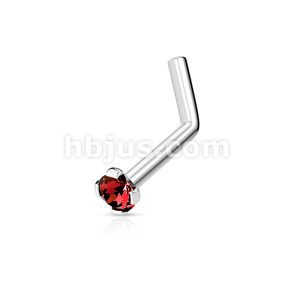 Round 2mm Prong Set CZ Top 316L Surgical Steel L Bend Nose Ring